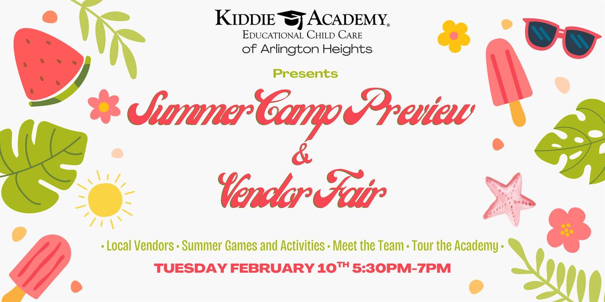 Get a sneak peek at what’s in store for Summer Camp at Kiddie Academy games, crafts, local vendors, and more!About this Event