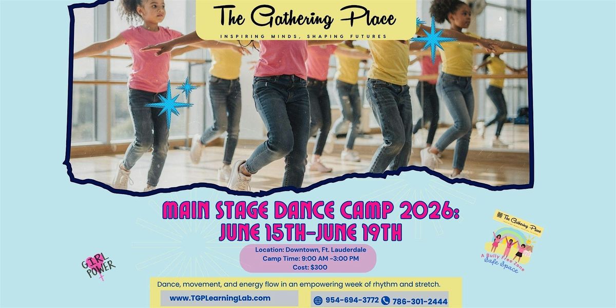 This high-energy week is designed for girls who love to move. Campers explore choreography, rhythm, stage presence, and expressive movement in a supportive all-girls space.This is not recital practice. This is Main Stage energy.Week 1 at The Gathering Place is designed for girls who love to move, perform, and express themselves boldly. In our all-girls microschool environment, campers build skills in choreography, rhythm, musicality, and stage presence while developing confidence that carries far beyond the studio. What Girls Will Experience