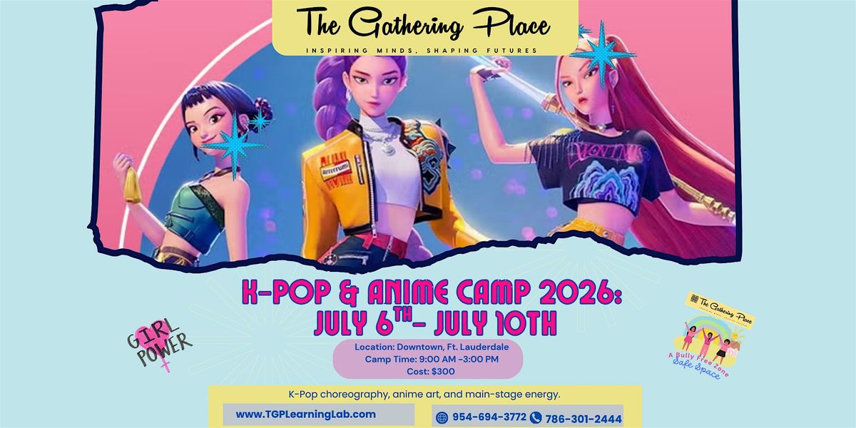Dive into the vibrant worlds of K-pop and anime—two cultural forces built on discipline, creativity, and unapologetic self-expression. This week blends high-energy dance training with storytelling exploration, creating a space where girls can be both performers and dreamers.This is not fan worship. This is skill-building through passion.Week 4 at The Gathering Place celebrates the artistry behind the phenomena. In our all-girls microschool environment, campers learn real K-pop choreography techniques, explore anime's narrative craft, and discover how dedication and creativity combine to create iconic performances and stories.