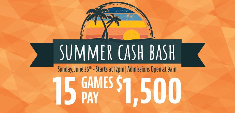 Join us for a Summer Cash Bash in Bingo with payouts of $30,000!15 Games Pay $1,500