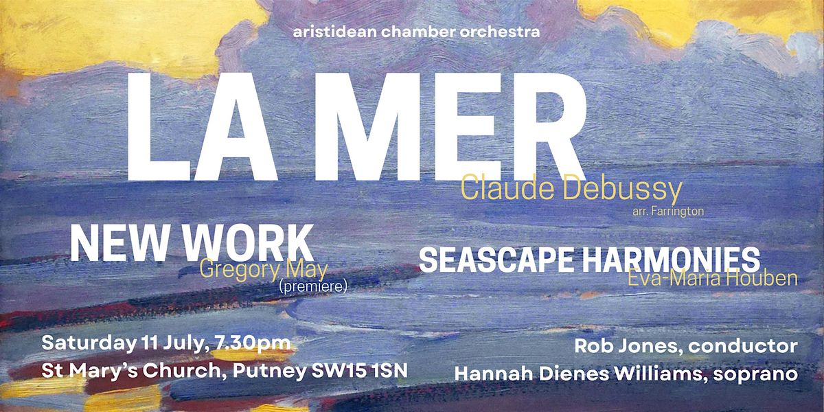 The Aristidean Chamber Orchestra presents Debussy’s impressionist masterpiece ‘La Mer’, alongside the meditative music of Eva Maria Houben and new music by Gregory May, with soprano Hannah Dienes Williams. Conducted by Rob Jones.