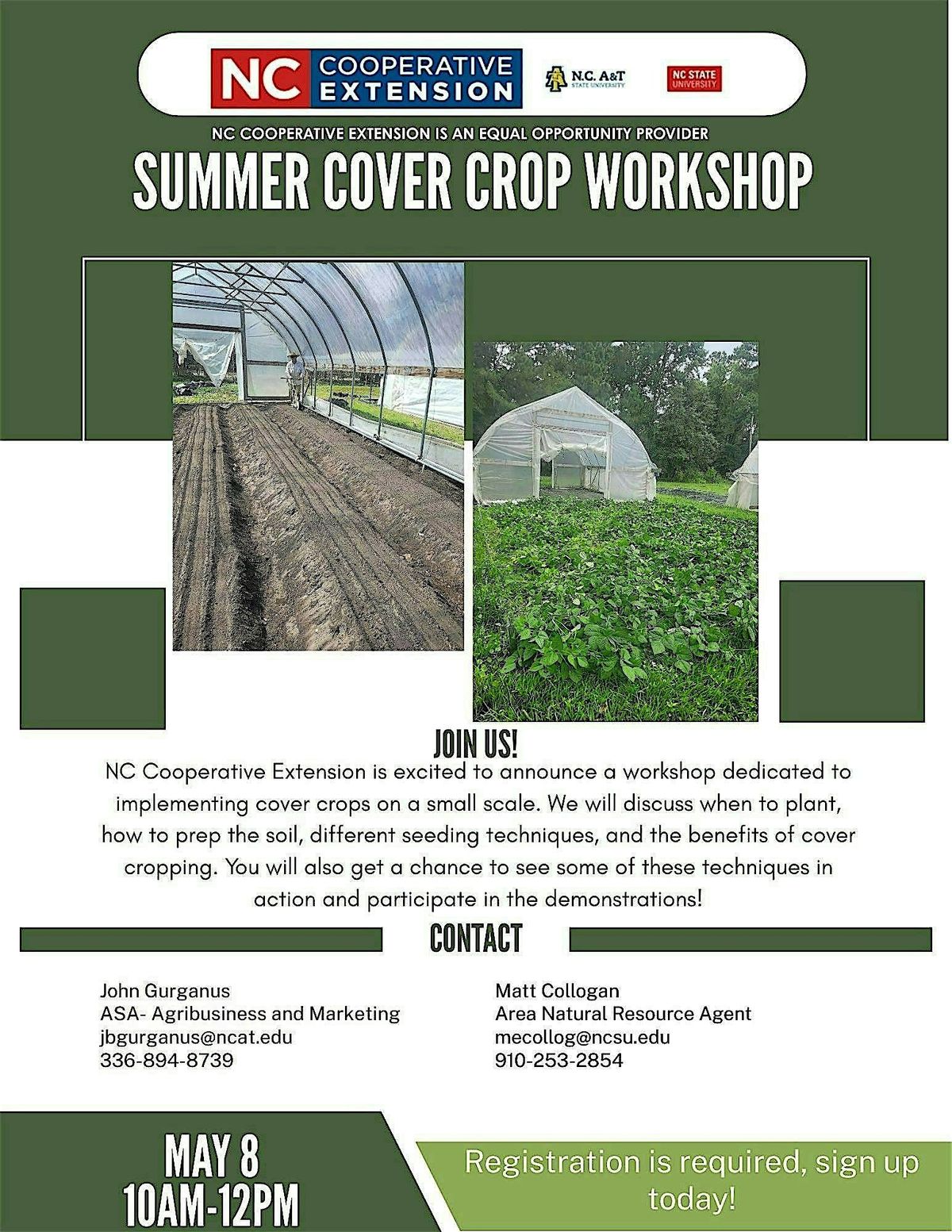 NC Cooperative Extension is excited to announce a workshop dedicated to implementing cover crops on a small scale. We will discuss when to plant, how to prep the soil, different seeding techniques, and the benefits of cover cropping. You will also get a chance to see some of these techniques in action and participate in the demonstrations!