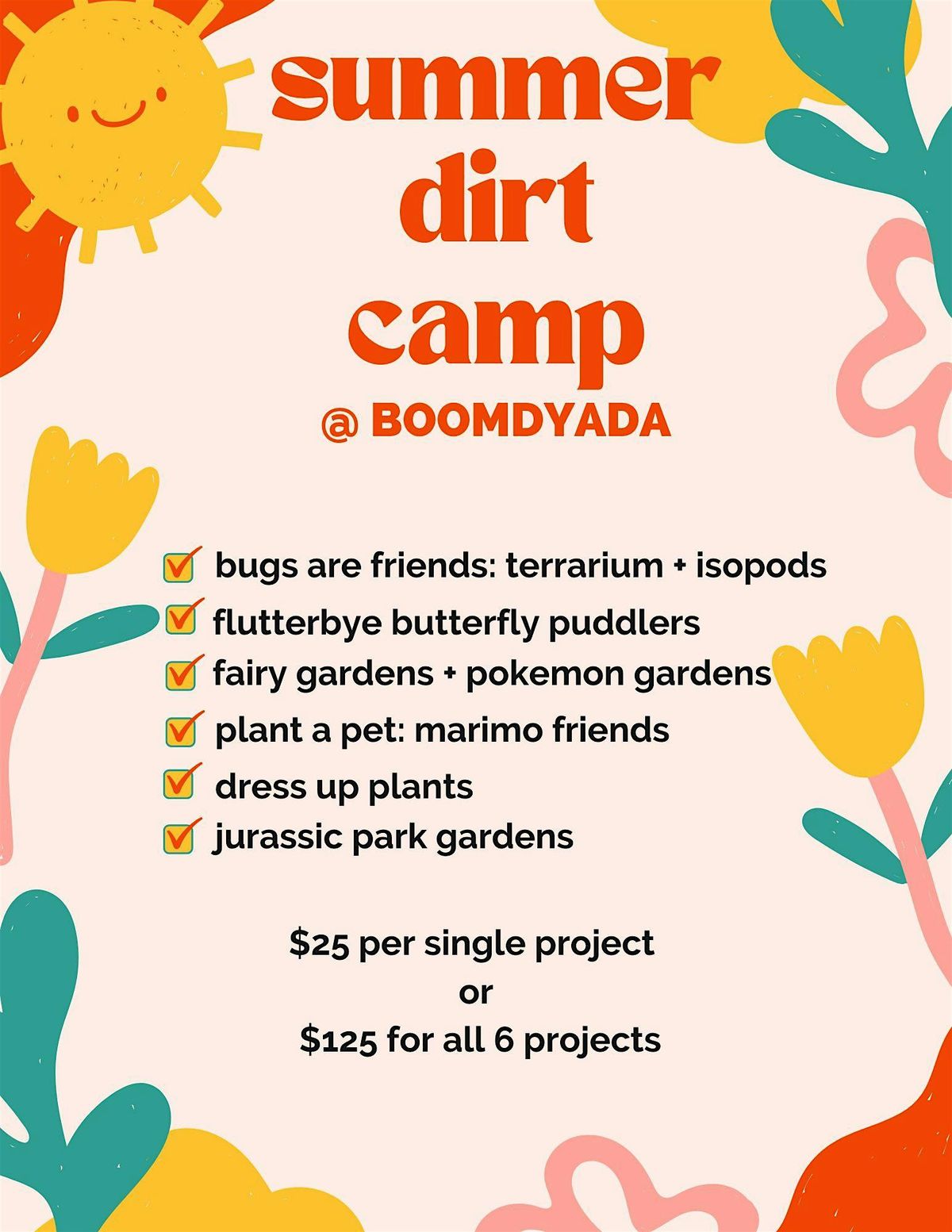 Summer Dirt Camp at Boomdyada! 6 weeks of earthy fun!