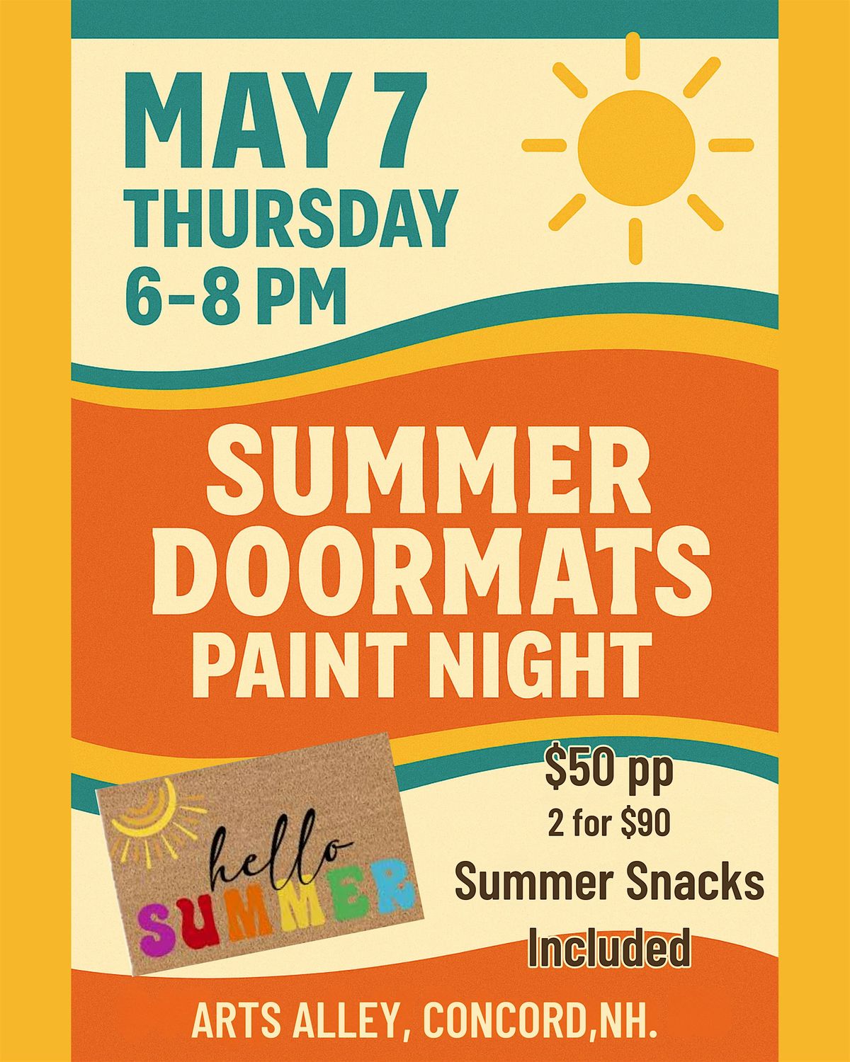 #HolymolyCraftyCorner #ArtsAlley #CraftThursdays #SummerCrafts #DoormatWorkshop #DIYDecor #PaintAndSip #ConcordNHEvents #LakeLifeVibes