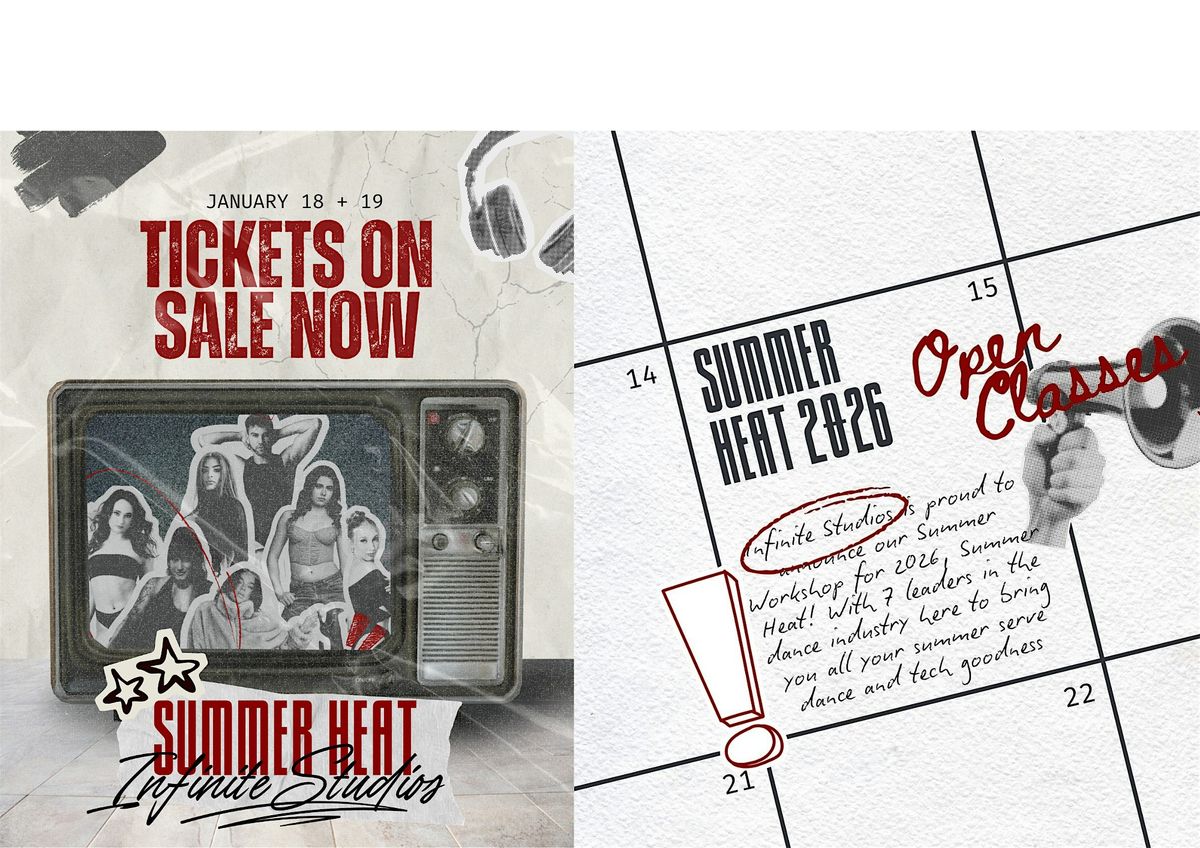 Learn from some of the best! Check out our two day lineup for SUMMER HEAT 2026 with some of the Industries most renowned choreographers and leaders in dance training, commerical jazz and tech!