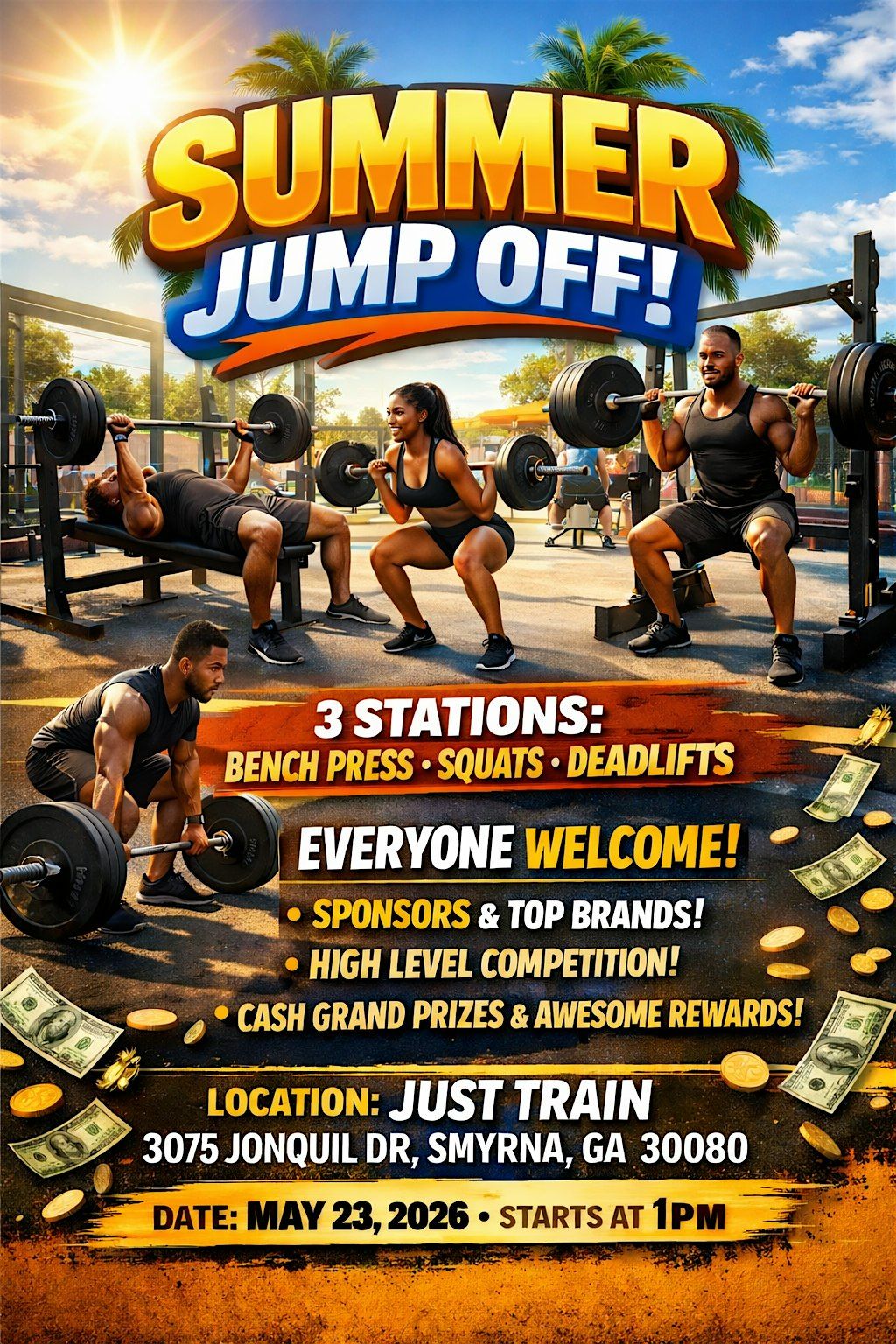The Summer Jump Off Showdown is cranking up, and it’s bringing nothing but heat, power, and straight competition. This isn’t just another workout — it’s a full-on test of strength, grit, and who really runs the rack. From heavy bench press to deep squats and raw deadlifts, every station is your chance to show what you’re made of.