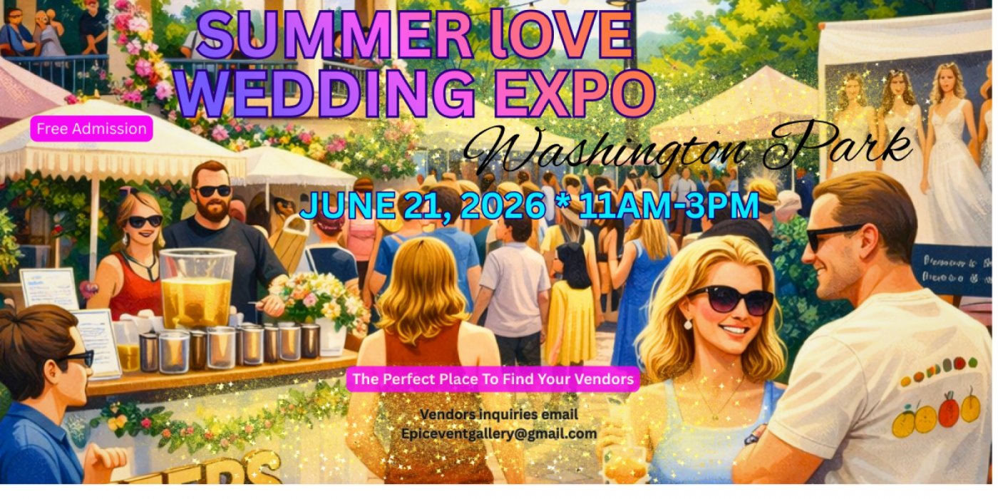 Join us for the Summer Love Wedding Expo at Washington Park on Sunday, June 21, 2026 from 11:00 AM to 3:00 PM!