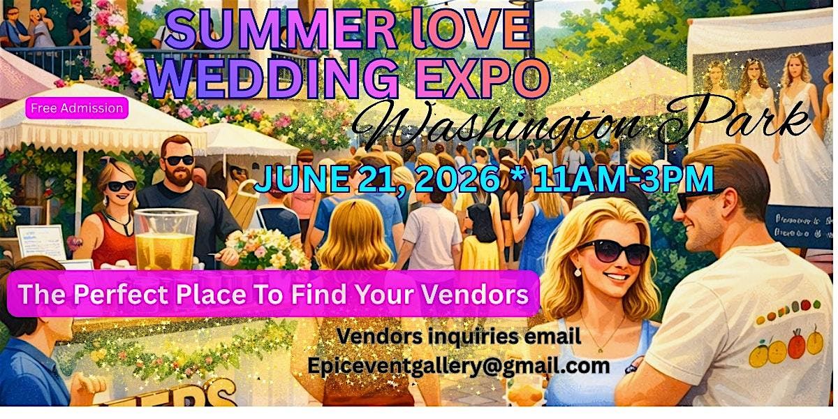 Join us for the Summer Love Wedding Expo at Washington Park on Sunday, June 21, 2026 from 11:00 AM to 3:00 PM!