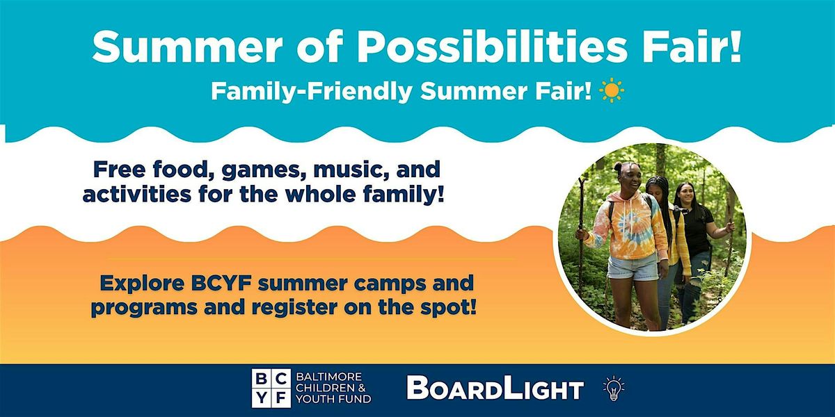 Discover a world of summer opportunities for Baltimore families! Join us for the BCYF Summer of Possibilities Fair—a free, family-friendly event where parents and caregivers can meet community organizations offering summer camps and programs for children and youth across Baltimore.
