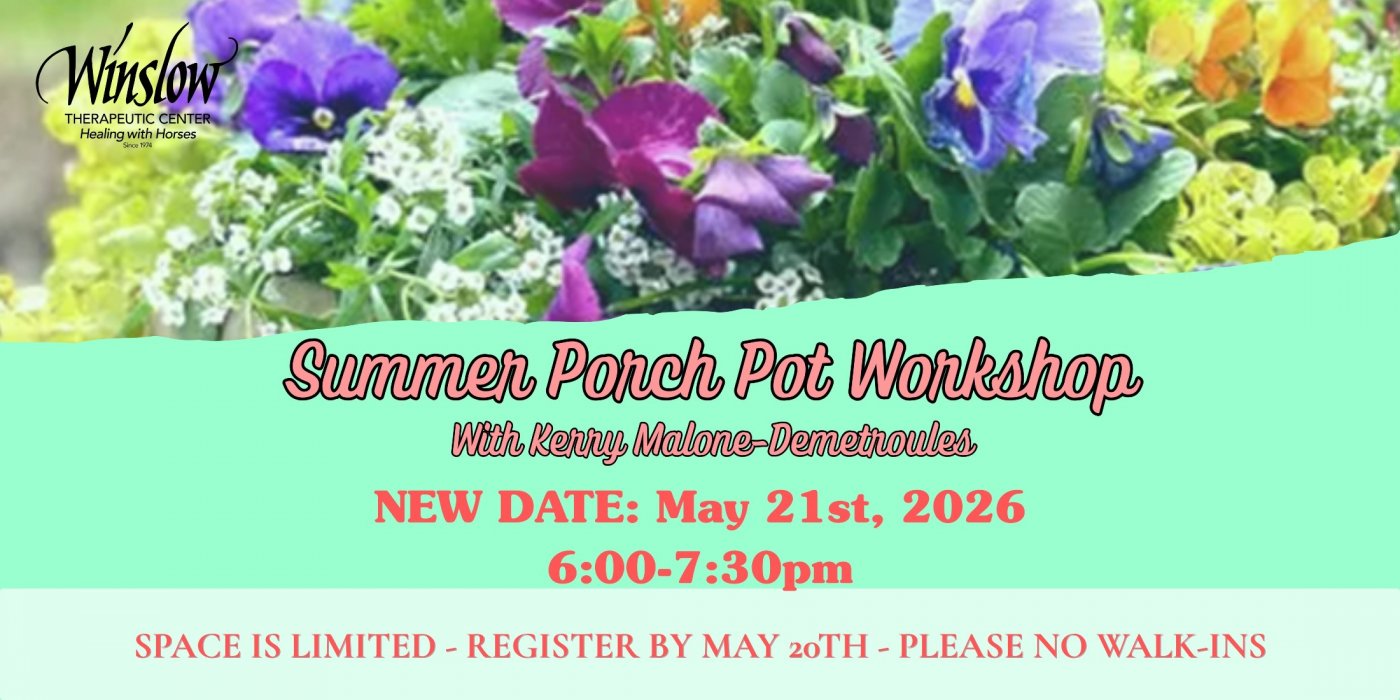 Come update your spring porch pot for summer or make a whole new one! Porch pots are a great way to liven up your home with fresh plants and can be updated all year round with seasonal foliage. Spots are limited, don’t miss out! $35 per person. Register at winslow.org/wellness.