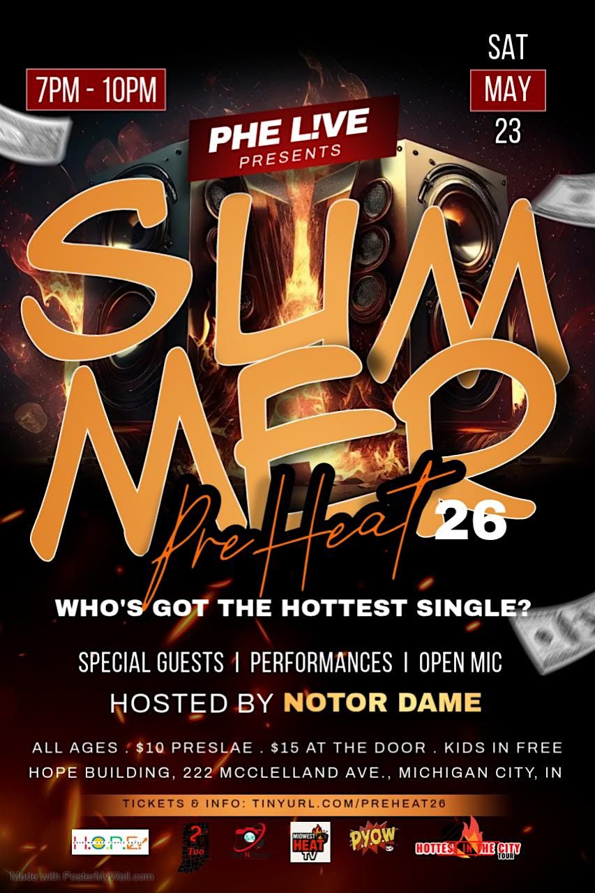 Get ready to turn up the heat! The Summer Preheat Series is THE open mic showcase you don't want to miss. This high-energy night will be packed with live performances, special guest appearances, nonstop music, and power networking opportunities β all set to the electrifying vibe of summer in full swing.