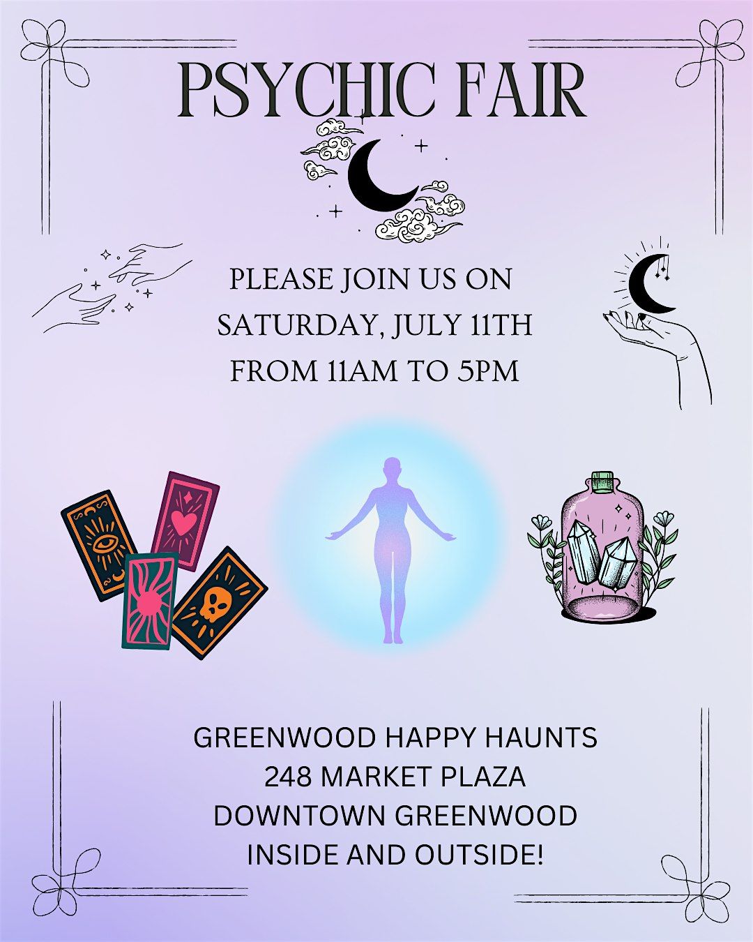 Get ready for an amazing day full of insight and fun at our in-person Summer Psychic Fair! Meet talented psychics, explore your future, and discover hidden energies all under one roof. Whether you're curious or a believer, this event is perfect for connecting with your inner self and meeting like-minded souls. Don’t miss out on the vibes and magic happening live — see you there!