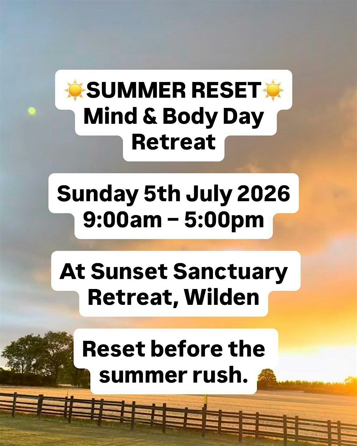 On Sunday 5th July 2026 (9am–5pm) we’ll be hosting a full day at the beautiful Sunset Sanctuary Retreat, Wilden designed to help you reset before the summer holidays begin.