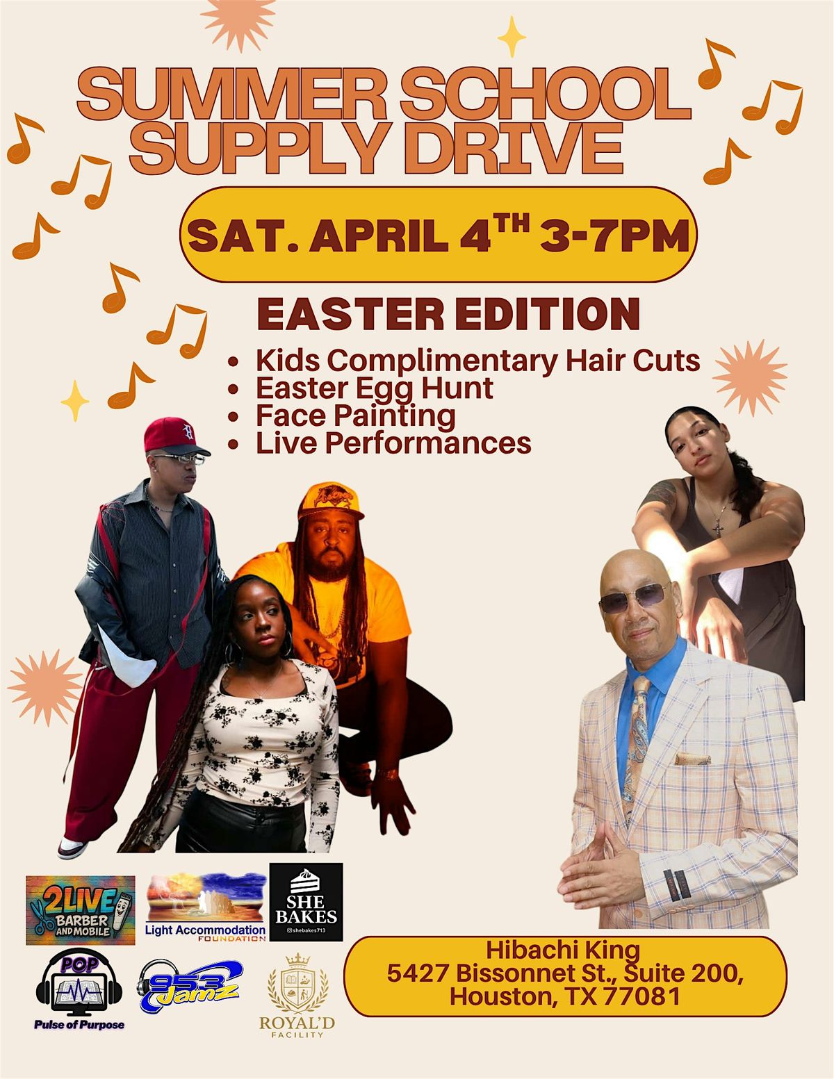 You'll enjoy some great eats from Hibachi King and Sweets from SheBakes713!