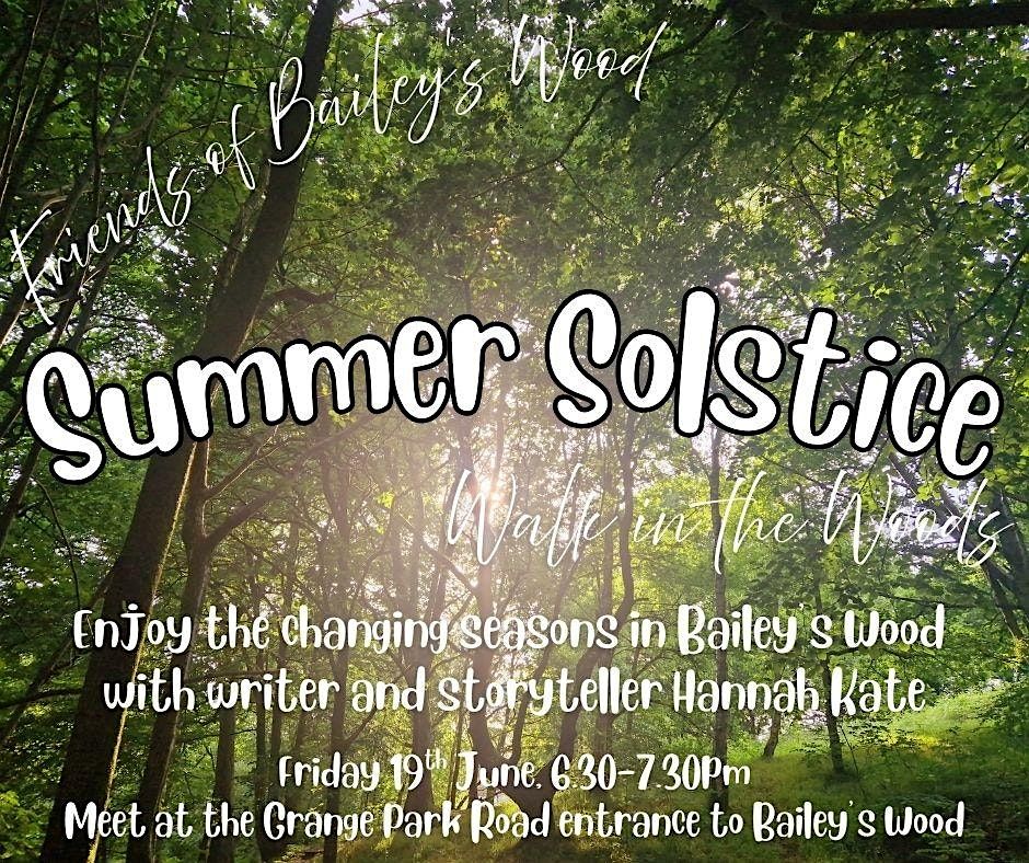 Join us in the woods to mark the Summer Solstice and enjoy the changing seasons. This is a gentle walk, suitable for most abilities and ages, with seasonal conversation and stories led by writer Hannah Kate. Meet at the Grange Park Road entrance to the woods.