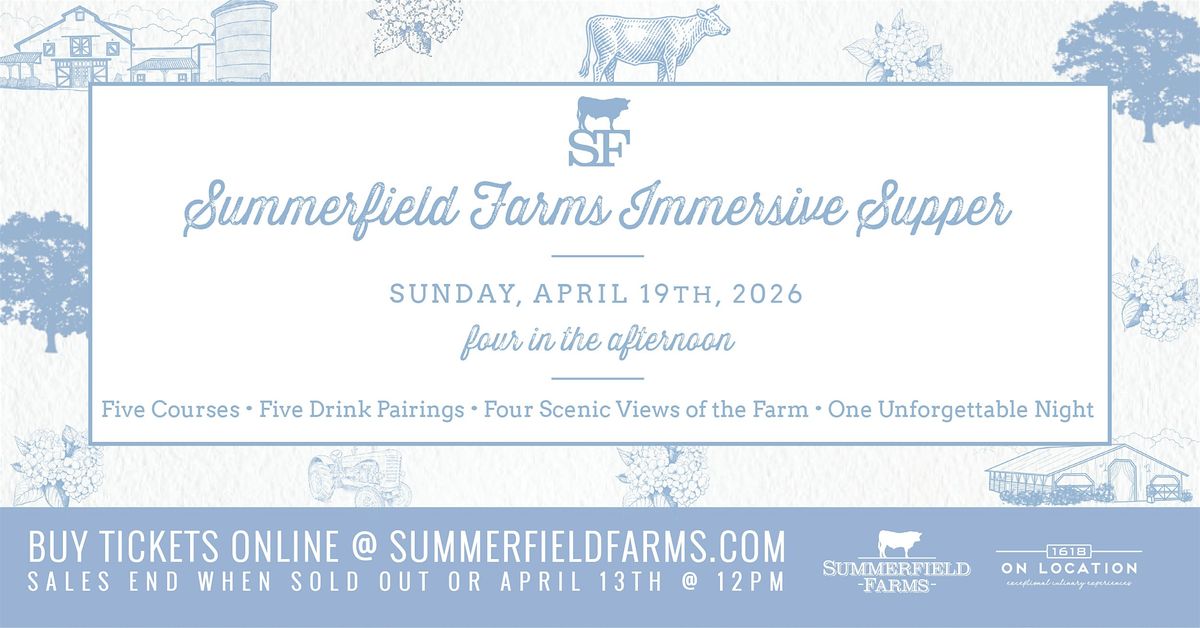 Join us for an evening of refined hospitality at the 2nd Annual Summerfield Farms Immersive Supper, where exceptional cuisine, exquisite pairings, and breathtaking scenery come together for an unforgettable experience.