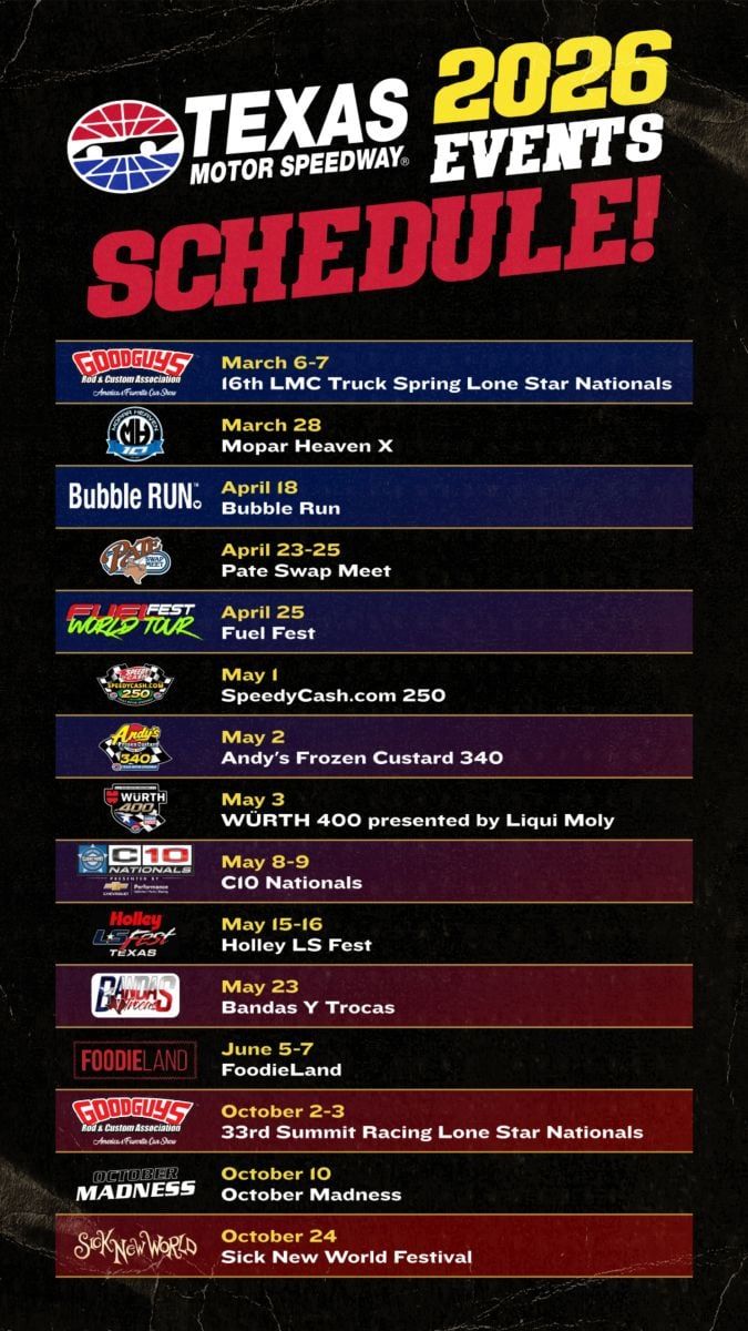 🎉 Welcome to Summit Racing Lone Star Nationals, where the impossible becomes possible and dreams take flight! 🏛️ Join us at Texas Motor Speedway in the heart of Fort Worth, TX for an event that will redefine your expectations. 📅 On October 2nd, 2026 at 06:00 PM, witness the transformation of space and time into something truly magical. ✨ It's a curated experience combining the best of innovation, entertainment, and community spirit, creating moments that will be remembered for years to come. Whether you're a first-time visitor or a seasoned enthusiast, prepare to be amazed. 🎊 Book now to ensure your place in this unforgettable experience!http://maps.seatics.com/TexasMotorSpeedway_SpectatorYouth_2023-01-16_2023-01-16_0822_01162023_083154_SVGC_tn.png