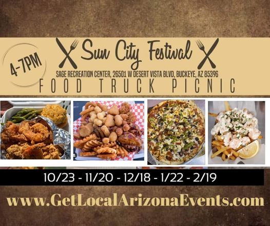 THE FOOD TRUCK EVENT IS BACK!!!!! we missed you in 2020, but the Events are back once a monthin festival!Join us (west of Surprise) in the beautiful Sun City festival community for a food truck picnic!