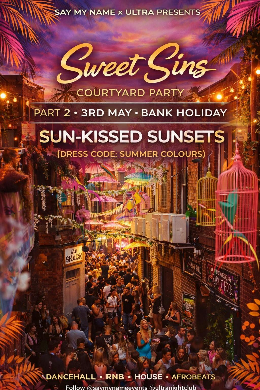 Say My Name X Ultra Presents Sun-Kissed Sunsets (Summer Colours Courtyard Party) ! ⚡️The Most Exclusive Courtyard Party destination for bank holiday Sundays