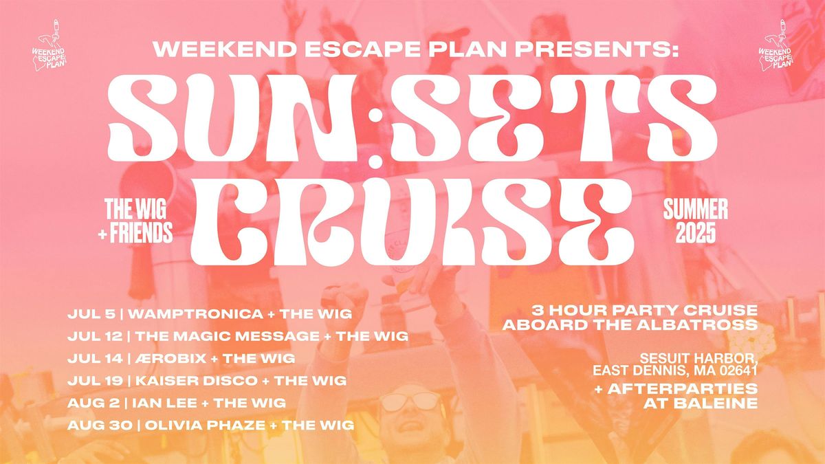 Cruise from Sesuit Harbor aboard the iconic , captained by the legendary Chip Carroll, while DJ/producer The Wig and a rotating lineup of top local selectors spin the best in house music as the sun sets over the water. Highly limited tickets are NOW available. Boarding starts 30 minutes before departure. Food included in your ticket price along with a cash bar (beer and wine).