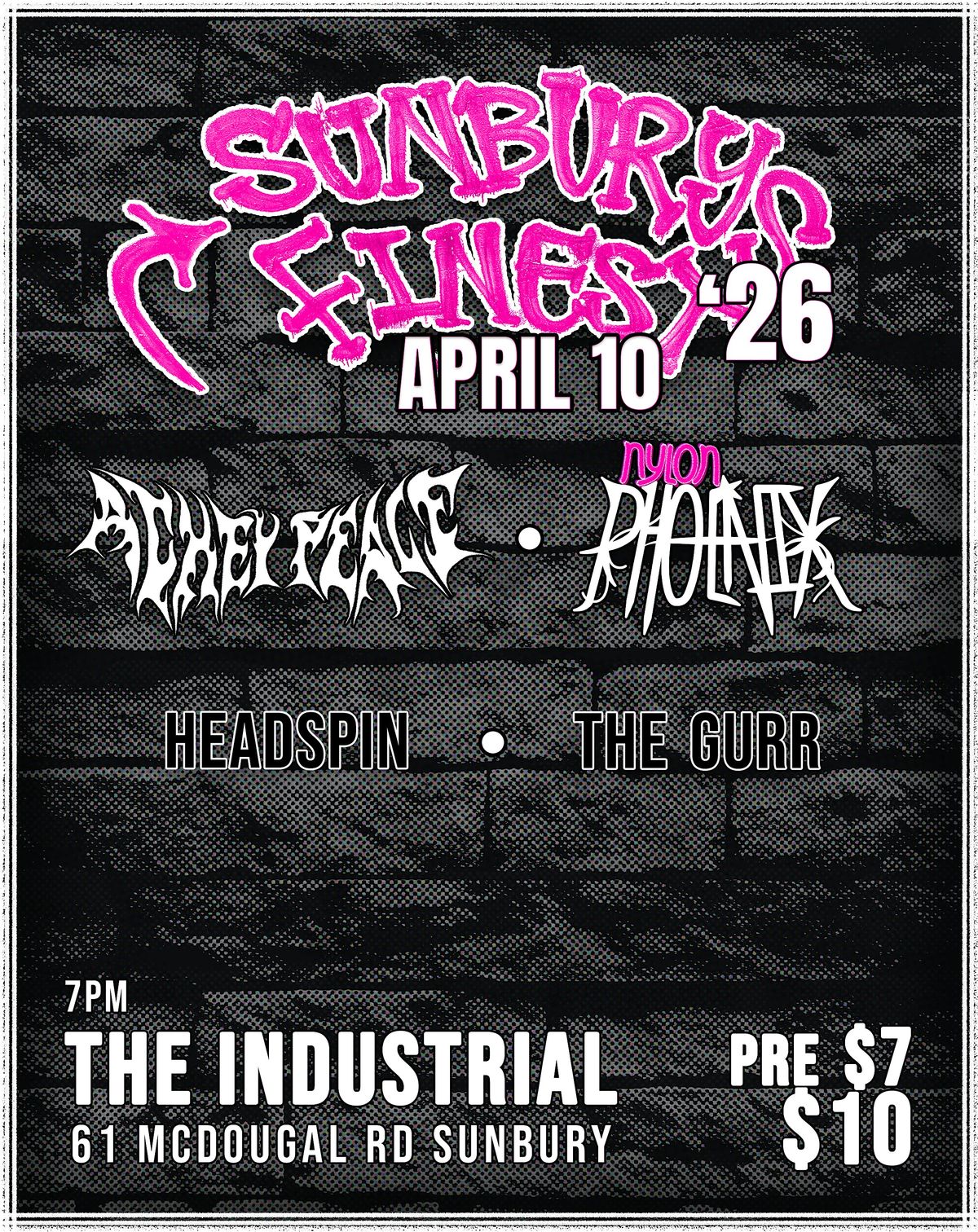 Get ready for Sunbury's Finest, the best of Sunbury's growing music community. With a history of great musical festivals, this is the new age of the music scene in Melbourne's north-western fringe. All bands feature local artists including the powerful Achey Peace, the ground breaking Nylon Phoenix, hard hitters The Gurr and the lowkey awesomness of Headspin. This is going to be the night spoken of in years to come as the birth of a new age in music. Tickets are limited so get yours quick.