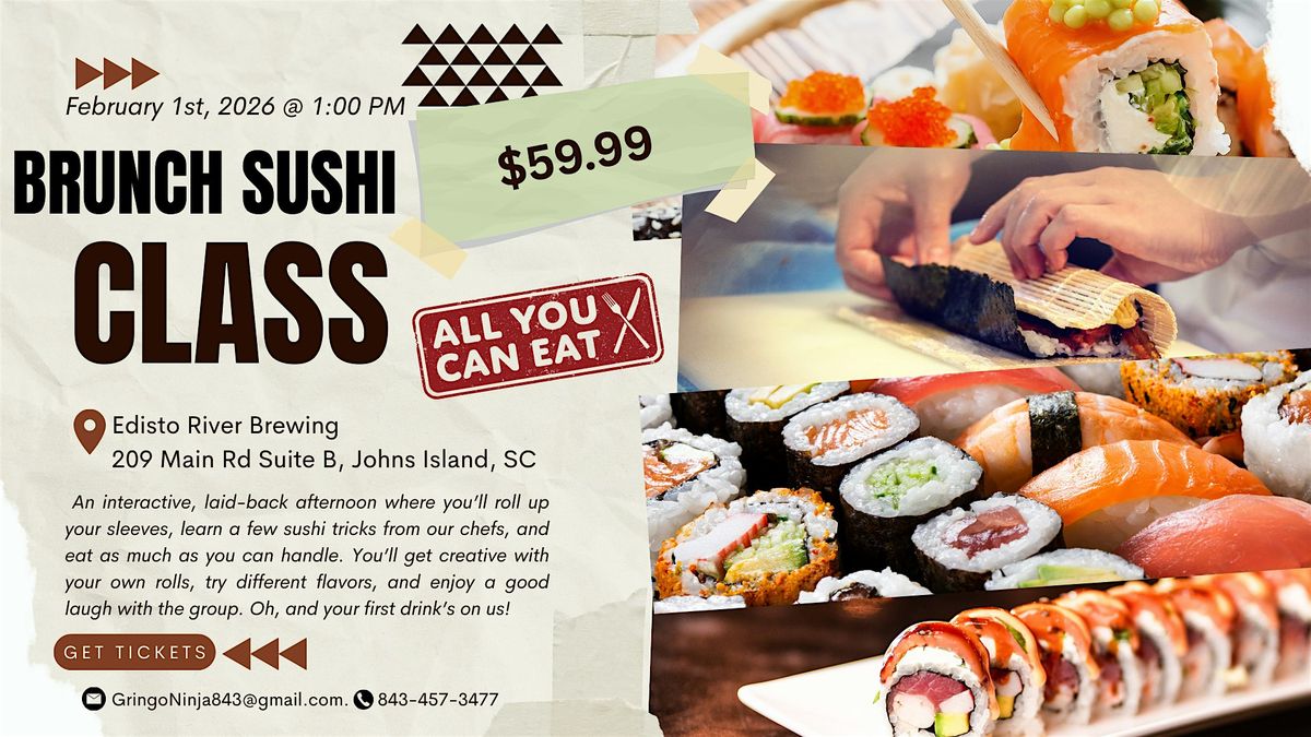 Join us for a delightful Sunday Brunch Sushi Class! Discover the art of sushi making with a unique twist, featuring both sweet and savory ingredients. Whether you're a sushi enthusiast or a complete beginner, this class offers hands-on instruction in crafting beautiful and delicious sushi rolls. Enjoy a fun and interactive experience, perfect for a relaxing Sunday morning. All you can eat! Includes one drink ticket.