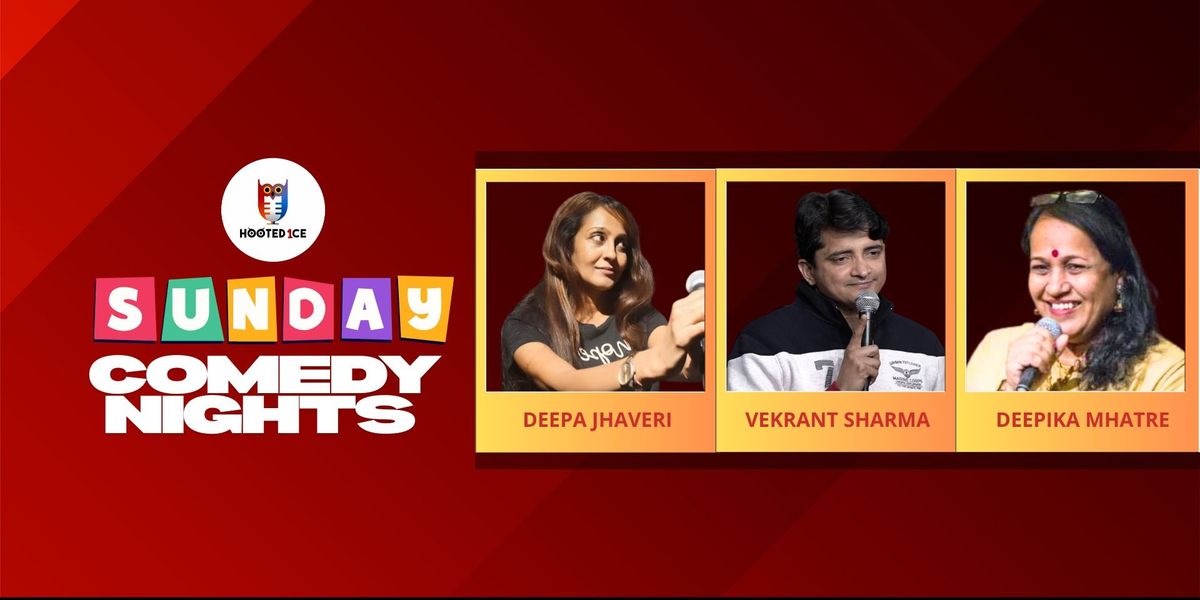 "Unwind your week with laughter! Join us for Sunday Comedy Nights, featuring stand-up comedians Deepa Jhaveri, Deepika Mhatre and Vekrant Sharma. Enjoy hilarious performances, great line up and good times with family and friends. Don`t miss out on the fun! Book your tickets now!"