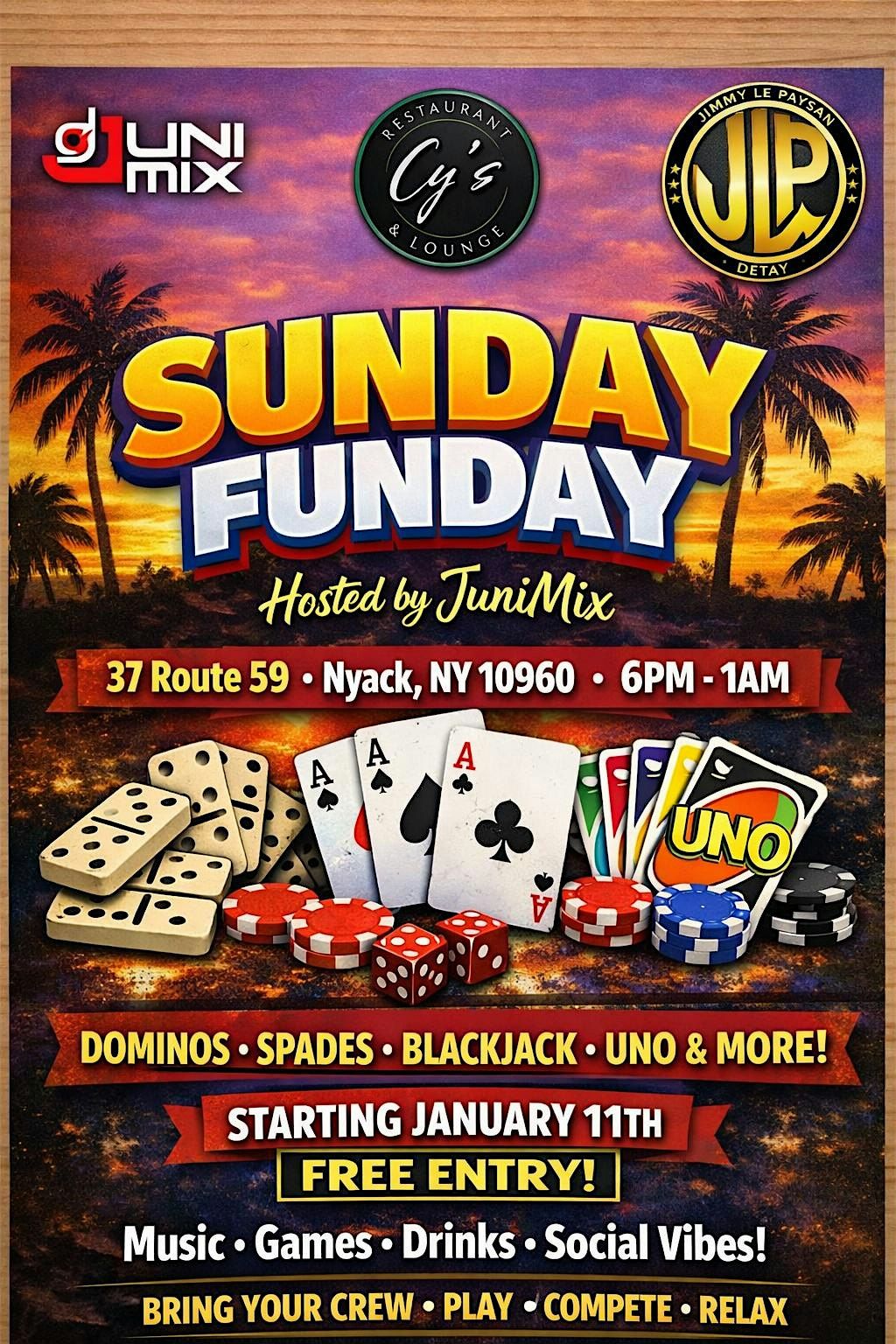 #SundayFunDay #JuniMix #CysRestaurant #GameNight #NyackNY #FreeEntry #SundayVibes #Dominos #Spades #UNO #Blackjack