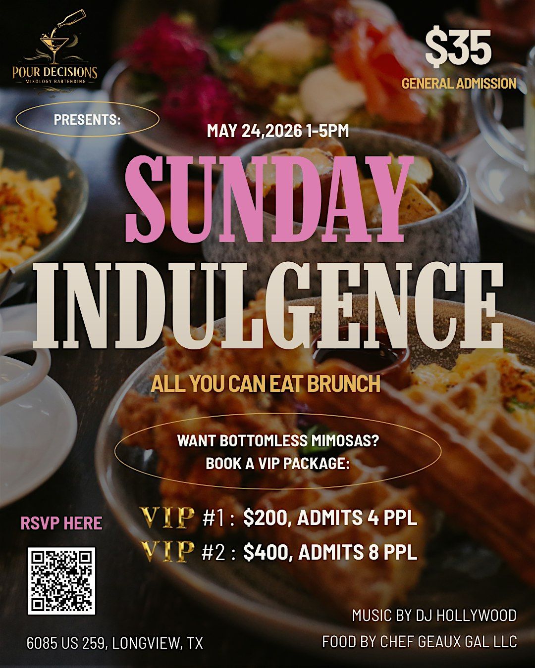 From bottomless mimosas to all-you-can-eat brunch, this isn’t just brunch—it’s an experience.