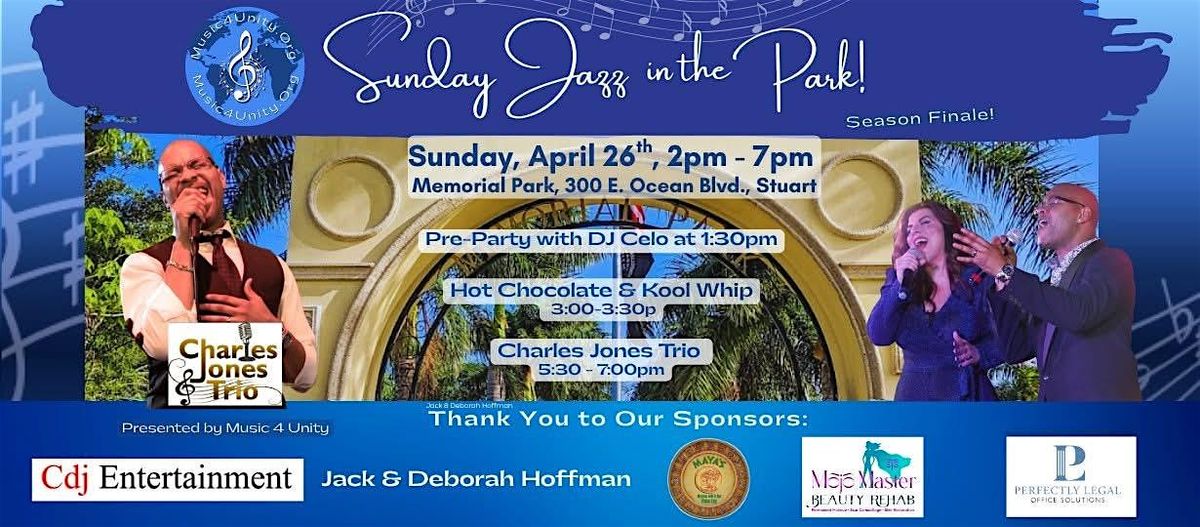• **5:30–7:00PM:** The incredible **Charles Jones Trio** closing out the night with Smooth Jazz, powerhouse vocals, and pure Sunday magic