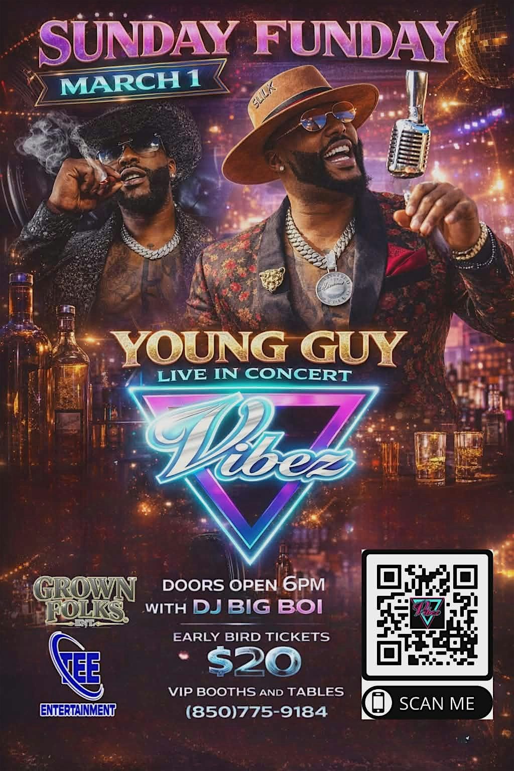 For VIP sections & bottle service text “GROWN FOLKS” to 8508668477