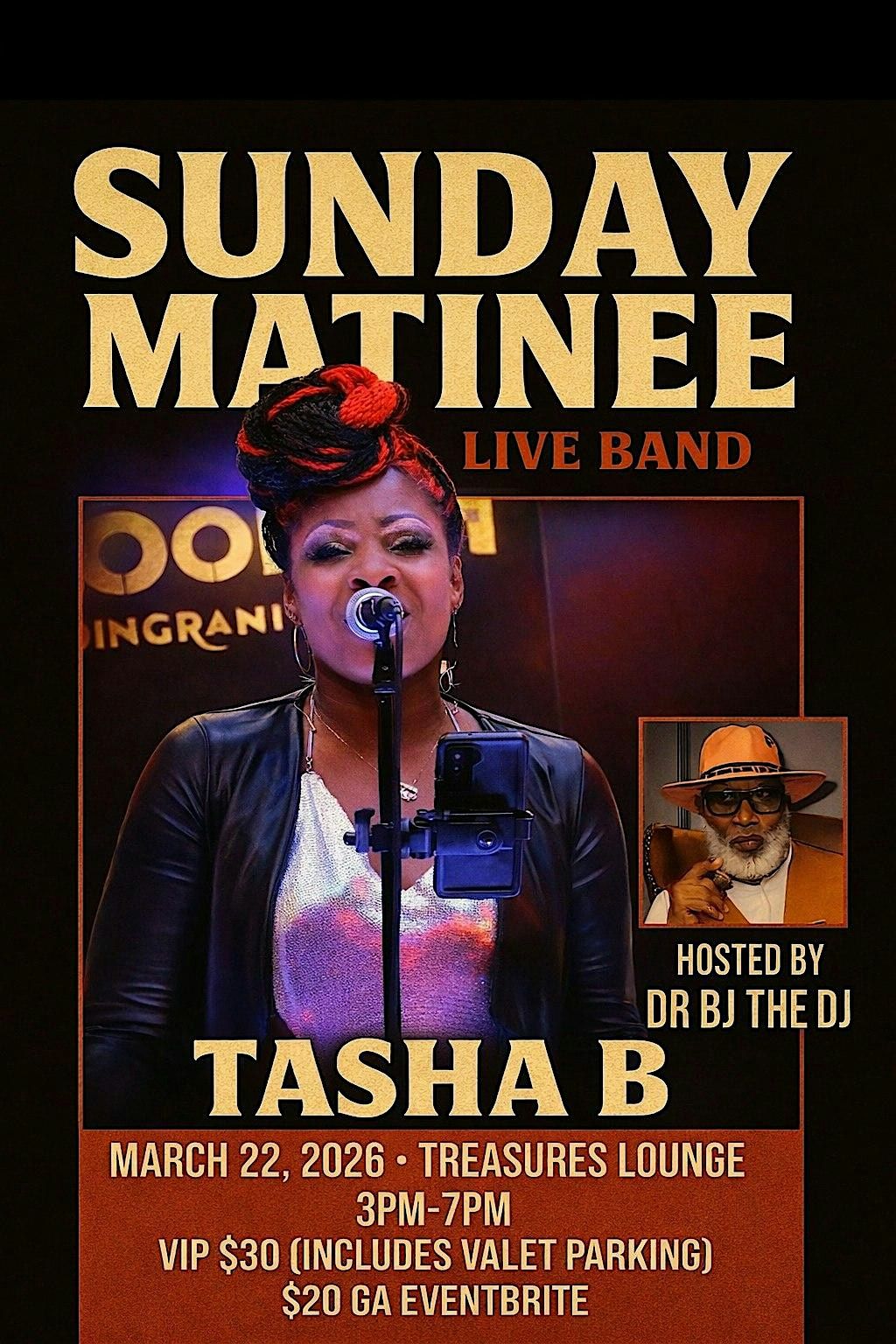 Welcome to the Sunday Matinee @ Treasures featuring Tash B.! Get ready for an unforgettable afternoon filled with amazing music and good vibes. Join us at 4517 Olive St on March 22, 2026 at 3:00 PM for a fantastic show. Don't miss out on this opportunity to enjoy live music in a cozy atmosphere. See you there!