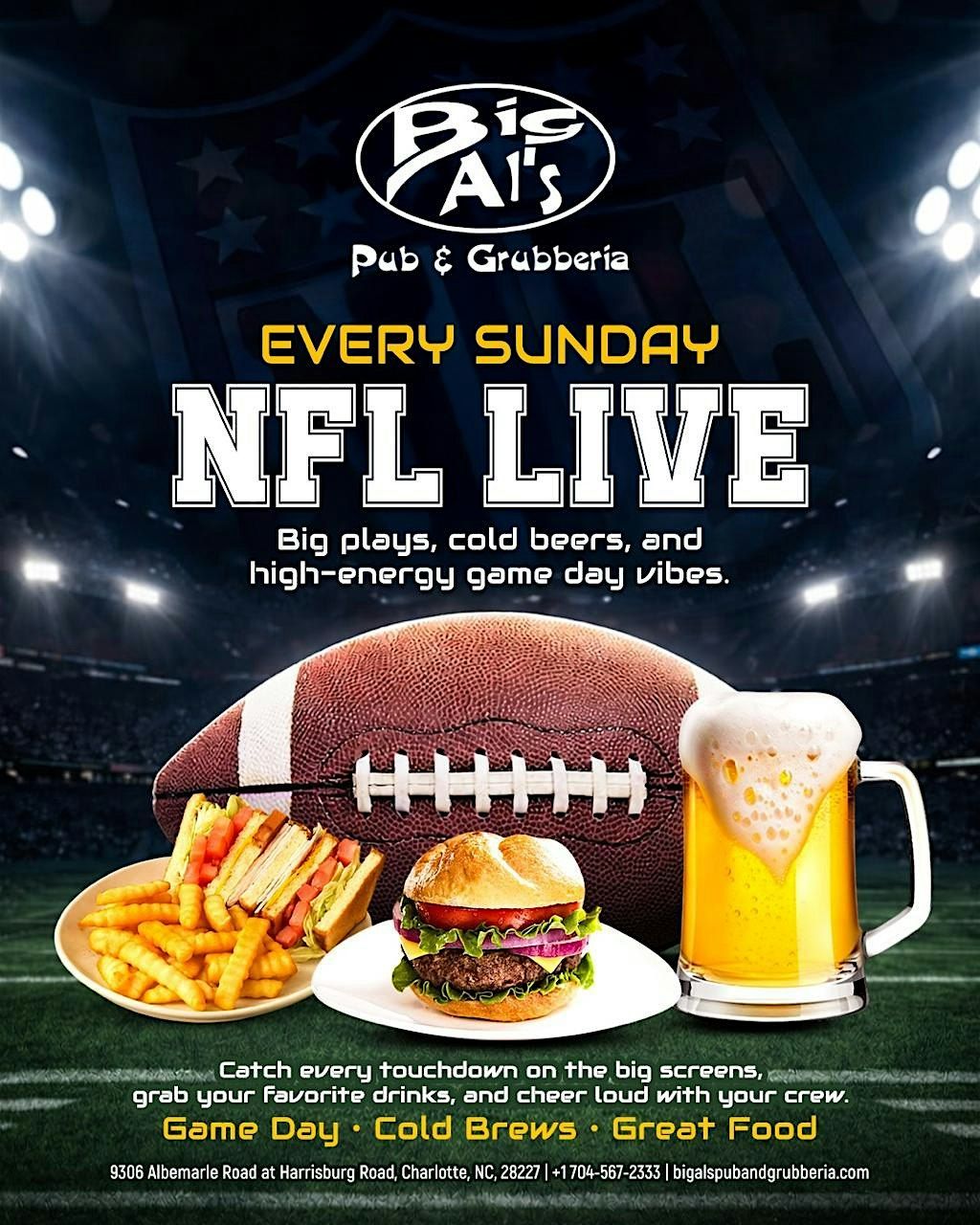 Catch all the Sunday NFL action live and loud at Big AI Pub — good vibes, big screens, and great company!About this Event