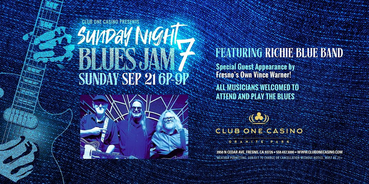 Join us for Sunday night Blues Jam featuring at Club One Casino, where Fresno’s finest musicians gather to trade licks, swap stories, and keep the blues alive.