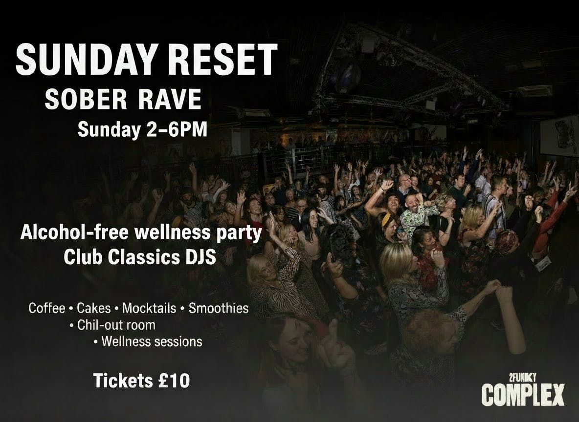 SUNDAY RESET: Sober Rave (2–6PM)A proper rave atmosphere, built for people who want the music, the energy and the community — without alcohol. Sunday Reset is an alcohol-free day rave designed to leave you feeling lifted, not ruined. Come dance hard, breathe, reset, and still be fresh for Monday.