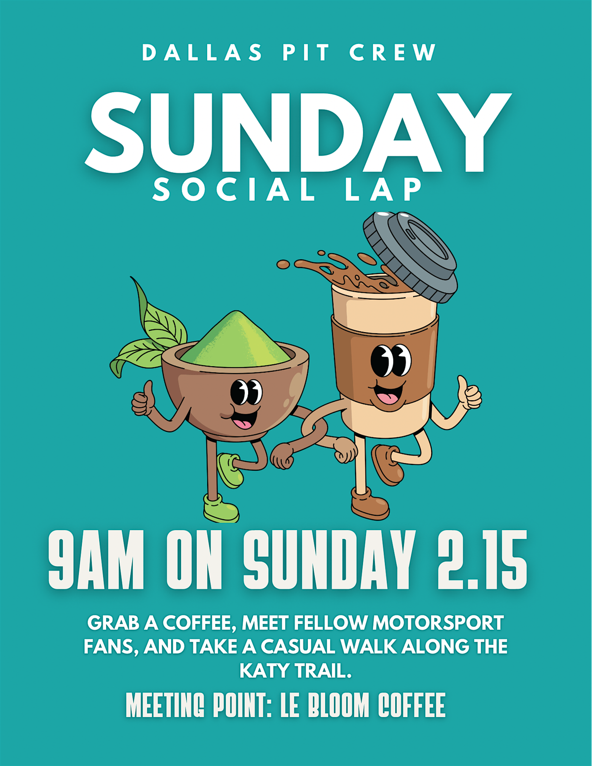 Join us for a walk on the Katy trail, come enjoy some great weather, coffee/tea and getting to connect with fellow Motorsport fans!About this Event