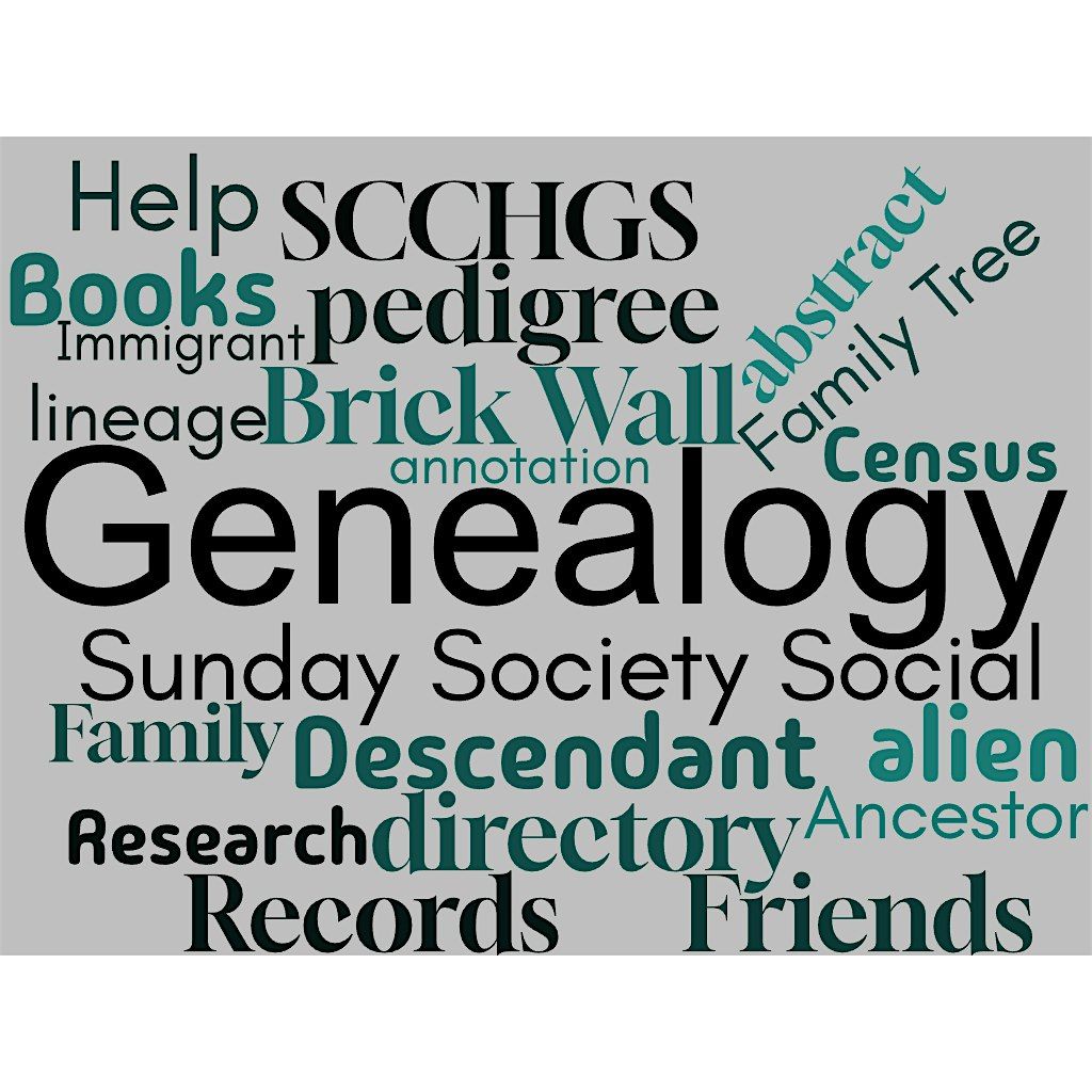 Please join us for SCCHGS’s January “Sunday Society Social!” We invite all to come and meet other genealogists, work on your research, share your great finds, perhaps break through a brick wall! Bring your computer and or your research files, ask peers for help, or offer assistance to others. There will be a brief discussion about some of the materials available at the library, perhaps you’ll find that missing piece to help in your research. We are located upstairs in the Heritage Pavilion. This is a registered event as space is limited.