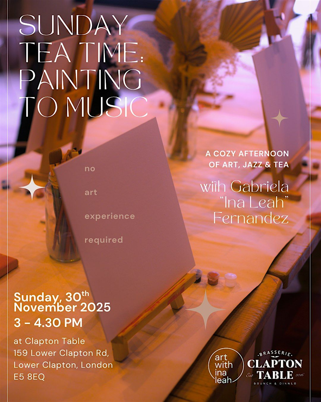 Discover your creativity in this painting to music session in London, a gentle activity designed to help you return to presence and connect through brush strokes, rhythm, and creative flow. No art experience is needed for this workshop, suitable for all level, it's a lovely tool to enhance your wellbeing. We’ll be using acrylic paint on square canvas, with curated jazz music and guidance, and yes, you’ll be able to take your artwork home with you :)