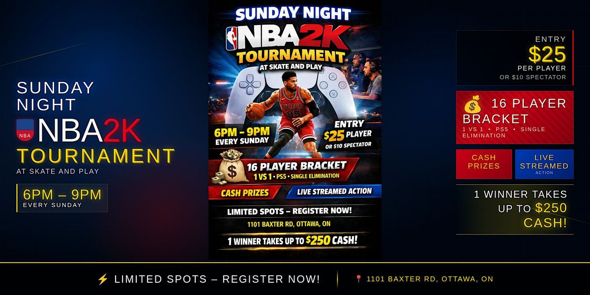 SUNDAYS = NBA 2K TOURNAMENT DAY at Skate and Play