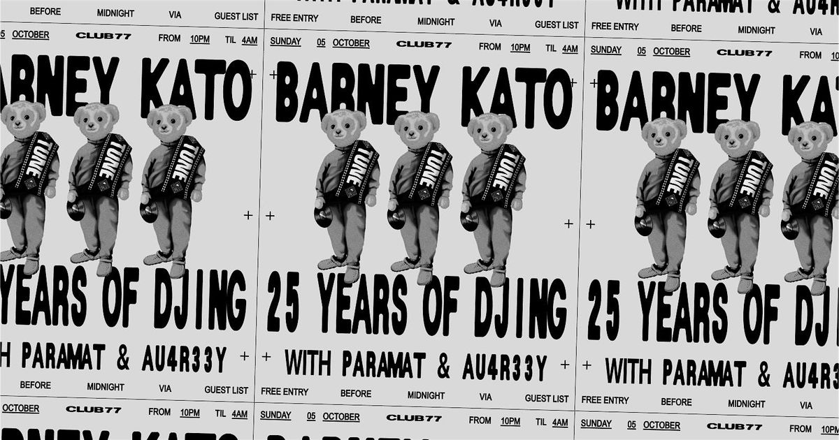 Event Info & Guest List: https://www.club77.com.au/events/barney-kato-25-years