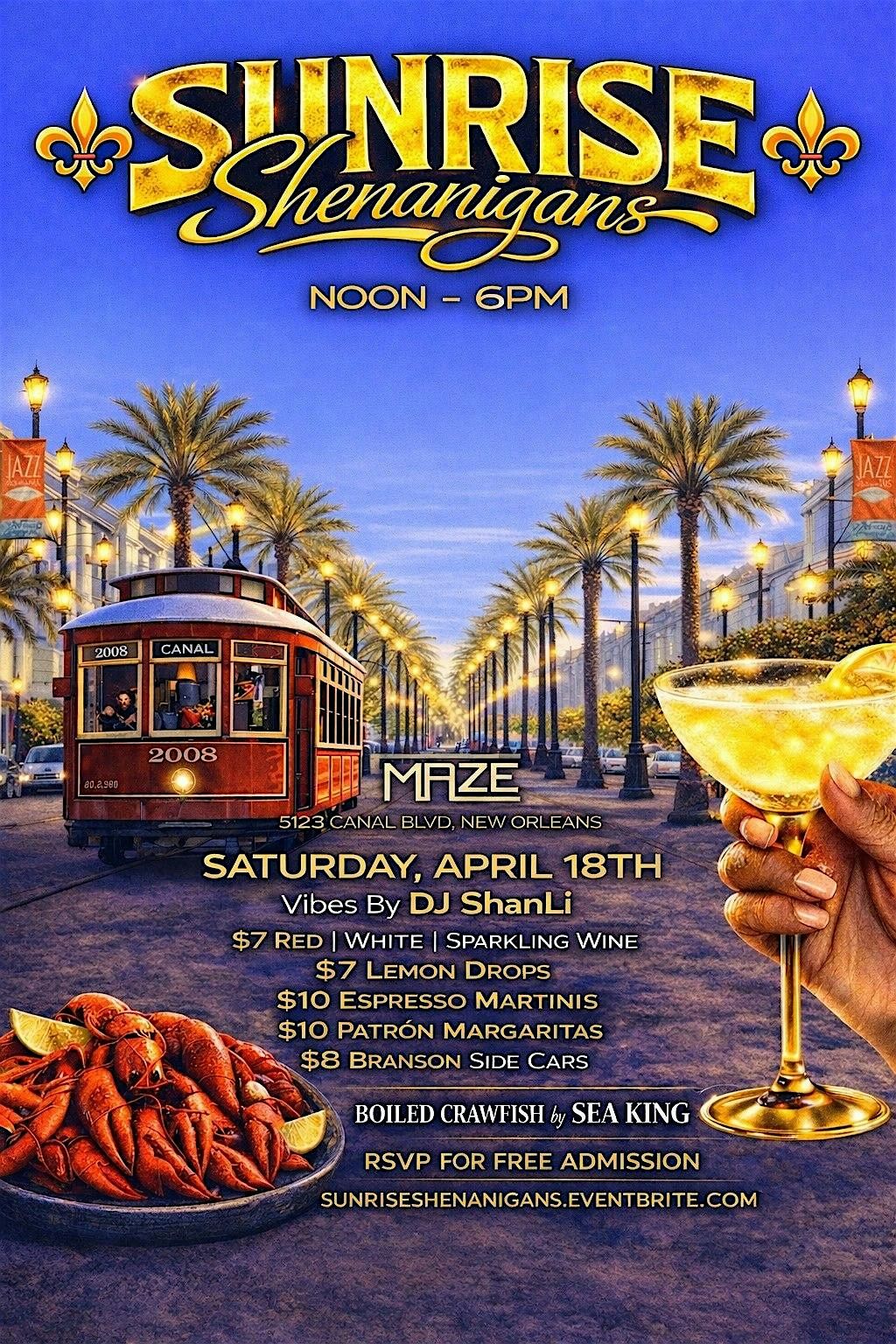 SUNRISE SHENANIGANS — NOLA’s hottest Saturday Brunch + Seafood Boil + Day Party.
