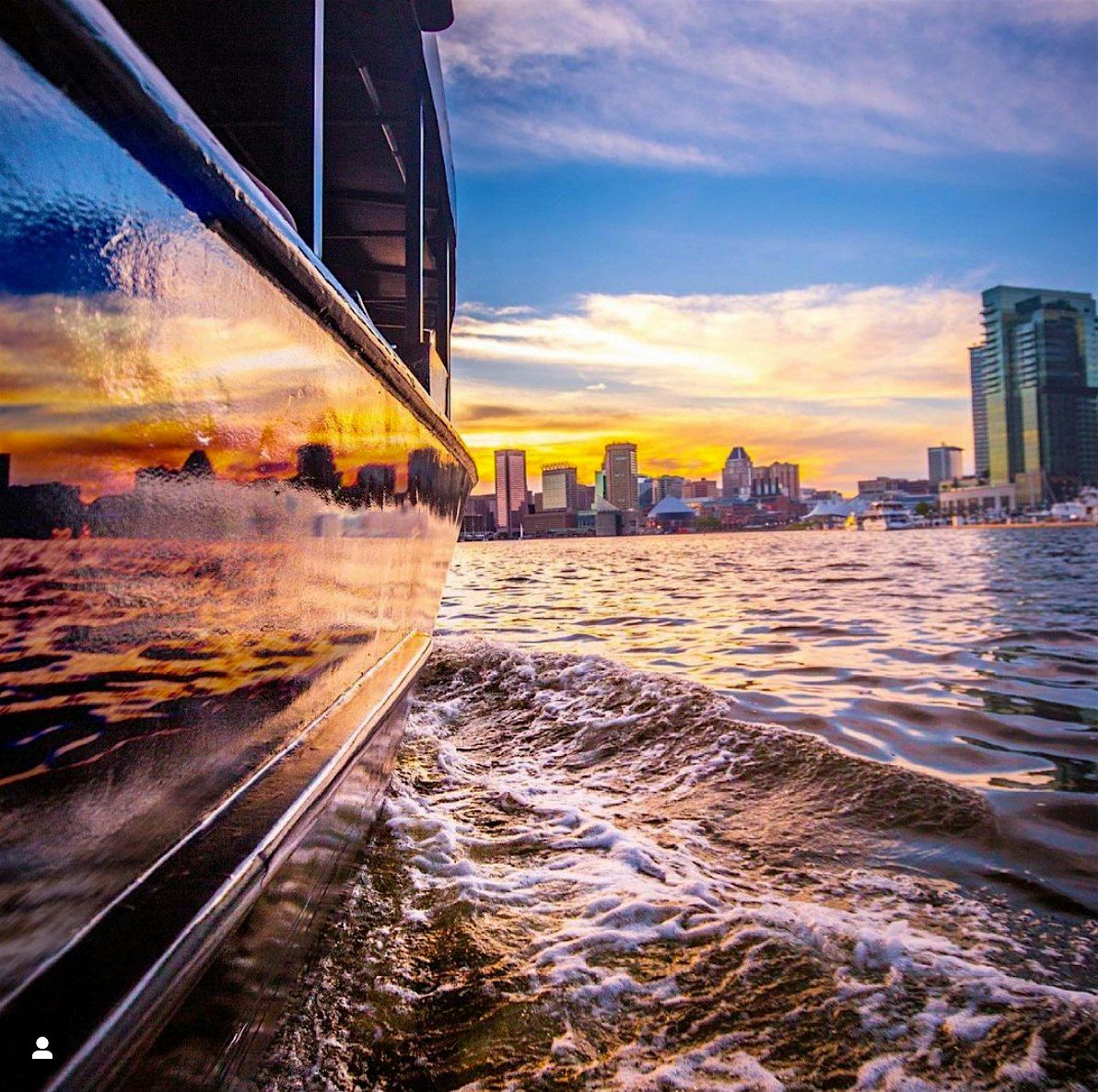 We'll head out from -- and return to -- the Fells Point water taxi stop at 901 S Broadway, and spend two hours enjoying the ride and a gorgeous view of the Baltimore sunset. Your ticket gets you a seat on the boat, a glass of bubbly, and snacks!