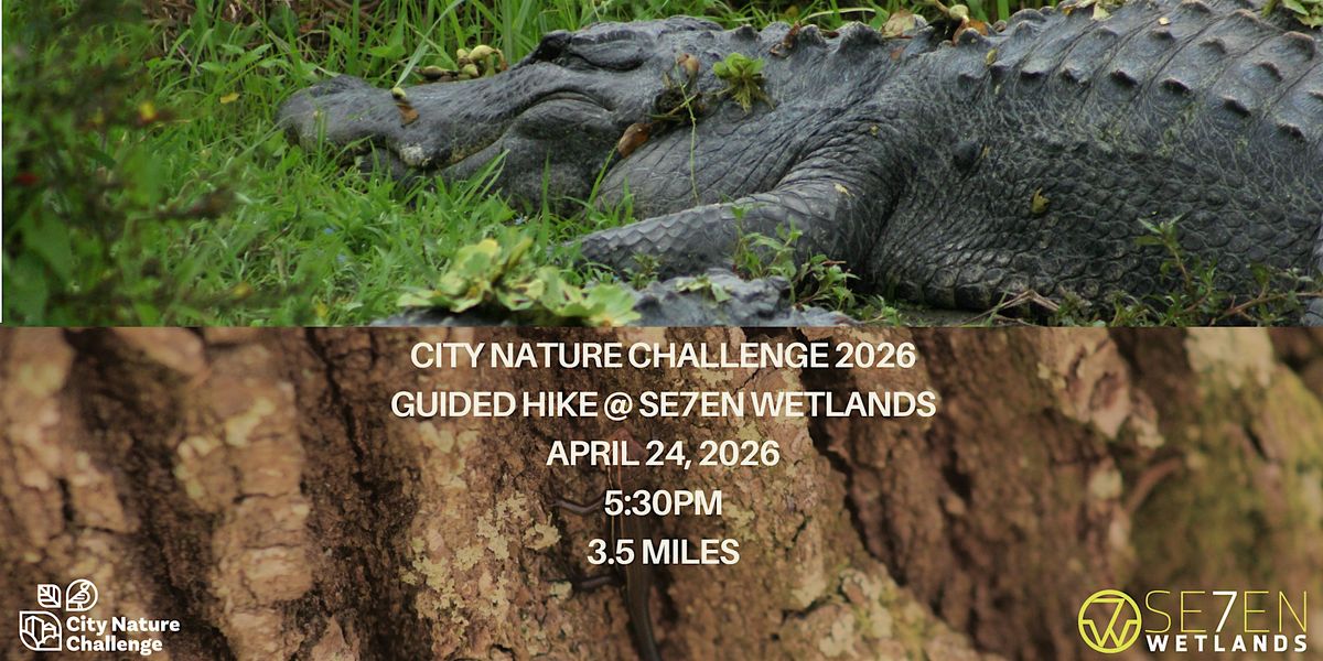 Join Se7en Wetlands for a 3.5 mile sunset guided hike! Each year cities from around the world collaborate to make nature observations during the City Nature Challenge! This international effort is an annual four-day event aimed at involving the community in documenting the nature they see around them. During this hike, we’ll focus on identifying plants and animals that we observe while we walk.