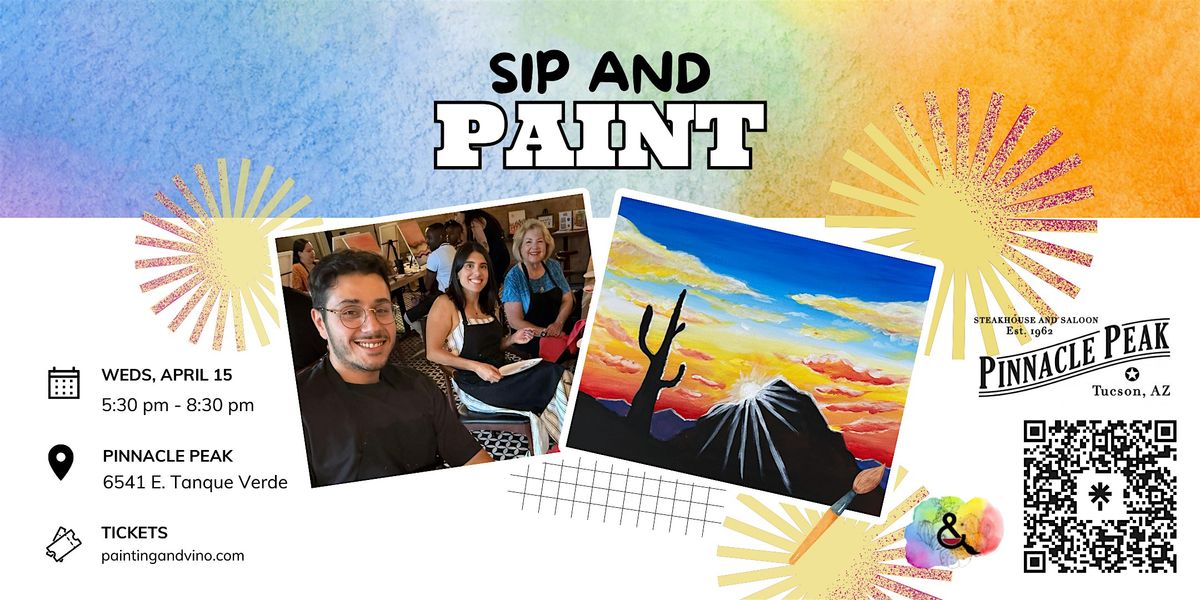 Please note your ticket is only for painting. Food and drink are available for purchase through Pinnacle Peak. Indulge in a delightful selection of beverages, including wine, beer, cocktails, and non-alcoholic options. It’s the perfect opportunity to sip, relax, and connect with a date or friends and family.
