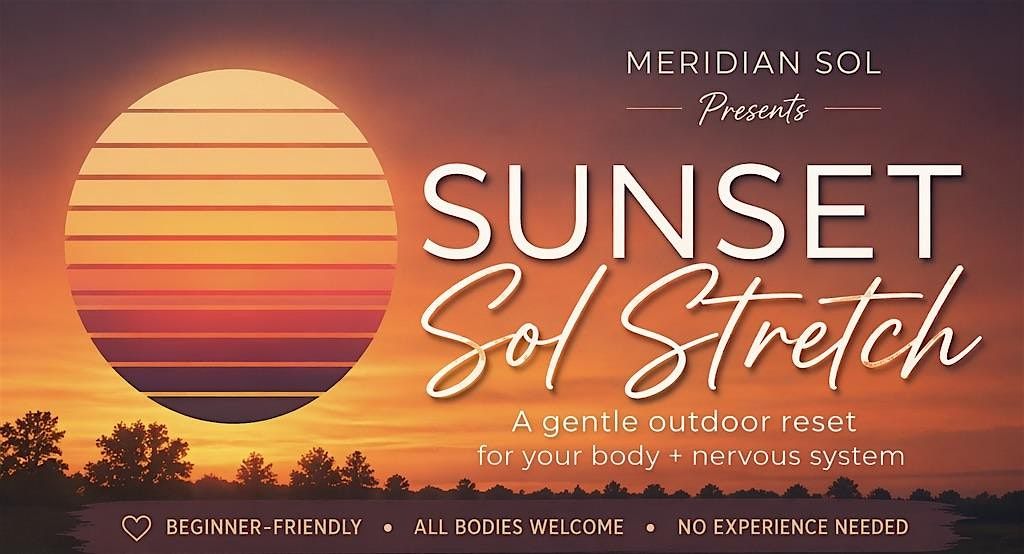 Sol Stretch is Meridian Sol’s signature slow-movement practice that blends accessible stretching, breath awareness, and restorative pacing to support relaxation, clarity, and balance. Held outdoors as the sun sets, this class creates a calm and welcoming space to reconnect with yourself and the natural rhythm of the day.