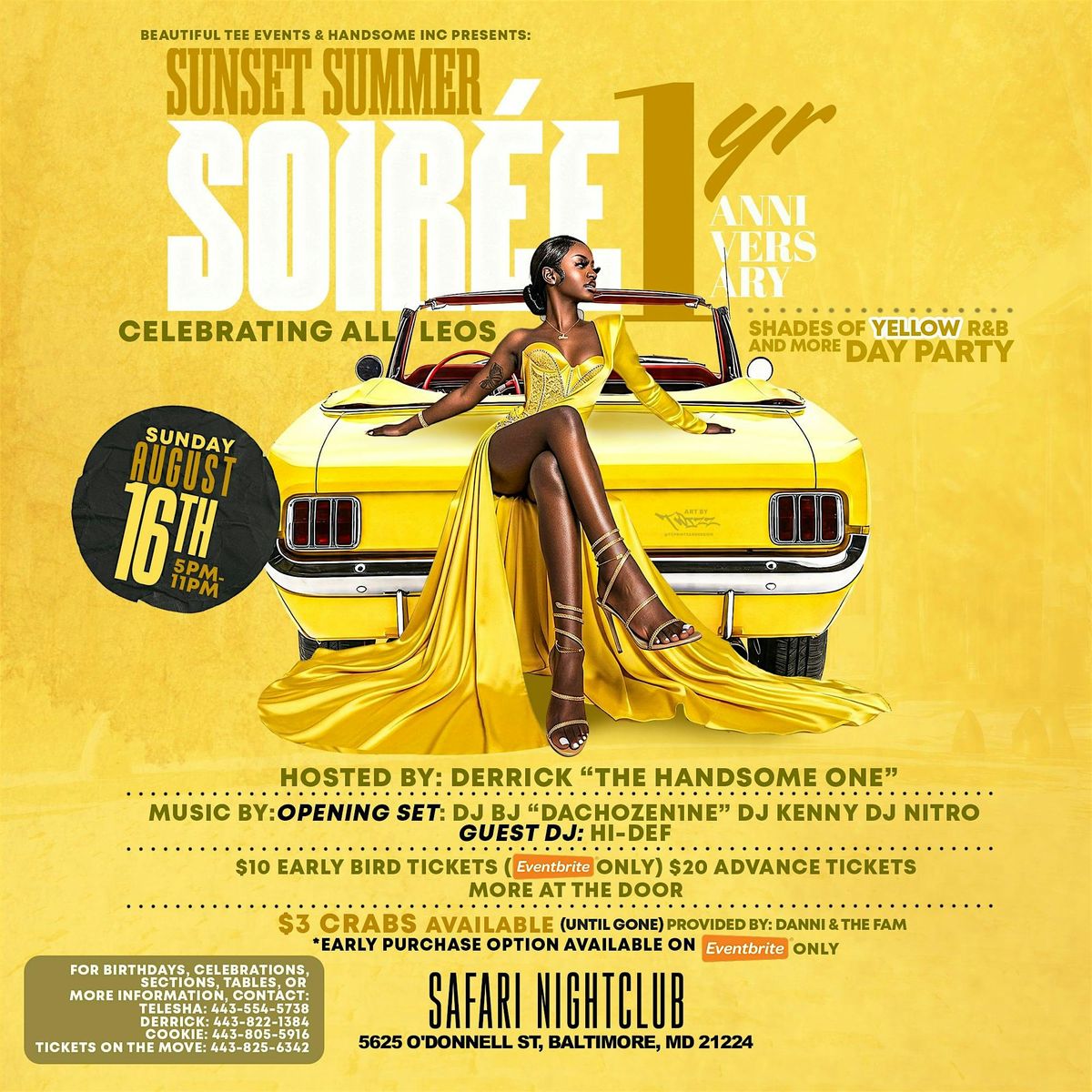 AUGUST MARKS THE ONE YEAR ANNIVERSARY THAT WE STARTED HAVING THESE SUNDAY R&B DAY PARTIES AND EACH ONE HAS BEEN A WHOLE VIBE. THE DEMAND IS CRAZY AND THE MOMENTS ARE UNFORGETTABLE. OF COUSE WE HAVE TO KEEP THE VIBE GOING FOR YOU ALL. THROW ON SOMETHING YELLOW OR YELLOW IN IT, GRAB YOUR TICKETS AND LET'S HAVE SOME FUN