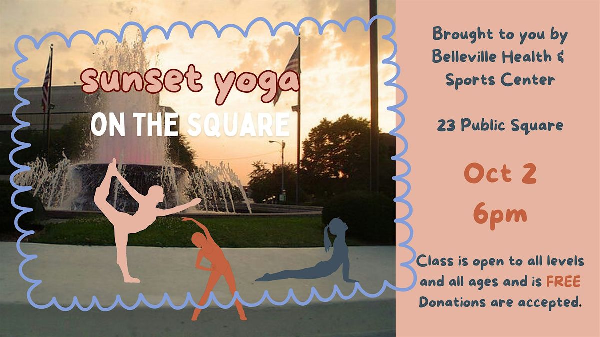 Nomadic Flow & Belleville Health and Sports Center are bringing you Sunset Yoga on the Square in downtown Belleville, IL on Oct 2, completely FREE! (Donations are accepted). This will be an outdoor class at 23 Public Square, across from the fountain. (NE Corner near where Santa's House is typically located). While we hope to catch a sunset behind the fountain and times are planned accordingly we can only guarantee a great yoga class not sunset. We'll plan a few sun salutations to be on the safe side though.