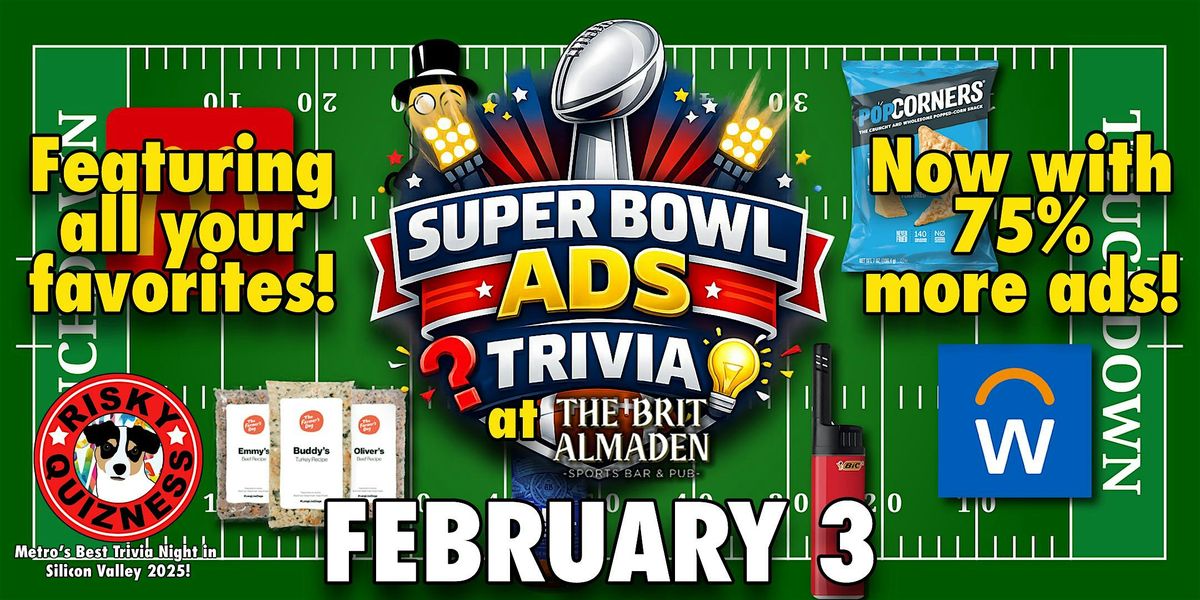 #SuperBowlAds #CommercialTrivia #AdNerds #TriviaNight #TheBritAlmaden #MarketingHumor #PopCultureTrivia #RiskyQuizness 📺🏈🍻