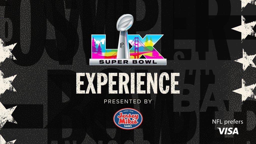 Super Bowl Experience presented by Jersey Mike's is held at the Moscone Center from Tuesday, February 3 through Saturday, February 7. It is the most exciting continuous event surrounding Super Bowl LX - pro football's interactive theme park offering participatory games, youth football clinics, merchandise from NFL Shop presented by Visa, and autograph sessions with NFL players. It features personalized digital photos, a 40-yard dash against NFL players on LED, a 59 Super Bowl rings display and photos with the Vince Lombardi Trophy! Share your experiences using #SBLX