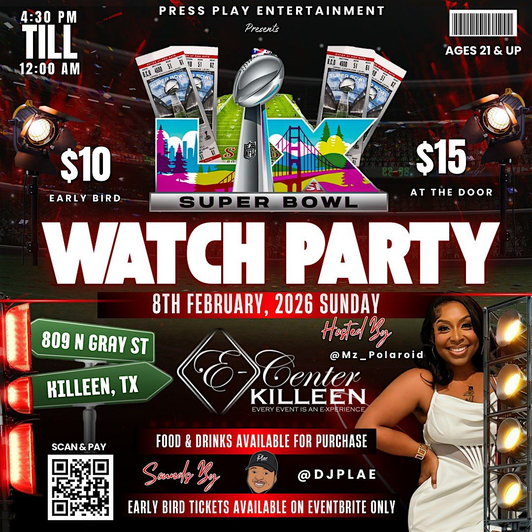 Get ready for the ultimate Super Bowl Watch Party experience—where all you have to do is show up and enjoy! Grab your friends, bring the family, and let Press Play Entertainment do the hosting. No cooking, no setting up, and definitely no cleaning up afterward. Come party with us and head home the same way you arrived—stress-free and satisfied.